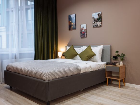 Хоть и апартаменты были минималистичные, зато мебель была качественная и хорошая, чистота — на достойном уровне, расположение для нас — очень даже выгодным. Кровать оказалась такой удобной, что почувствовала себя такой отдохнувшей, какой не была уже много лет. В общем, остались довольны сделанным выбором.
