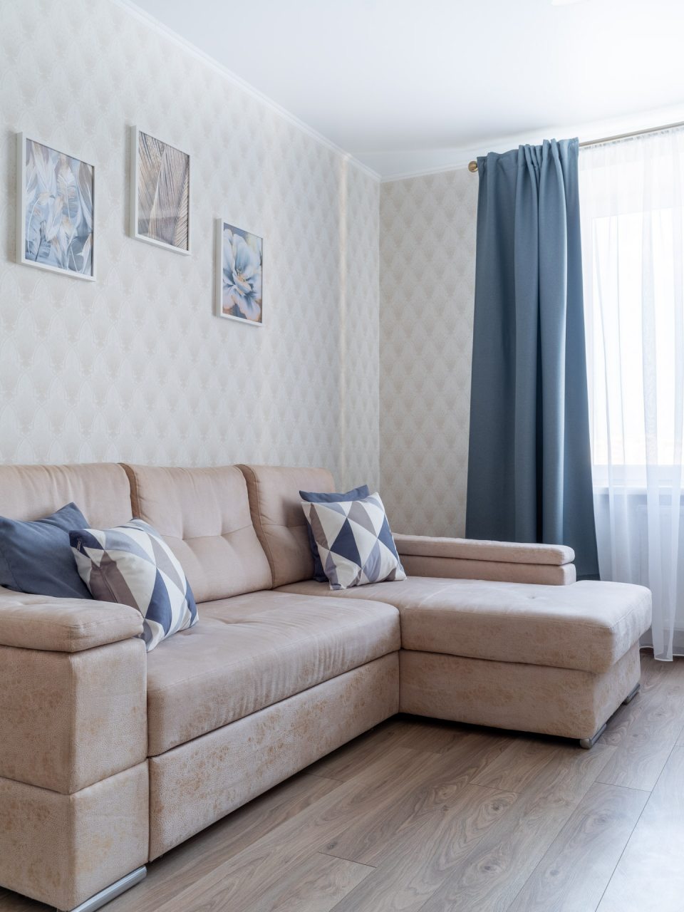 Для полноценного отдыха и проживания предусмотрены: двуспальная кровать, удобные и вместительные диваны, ЖК-телевизор, шкаф с большим зеркалом, а также ванная комната со стиральной машиной.