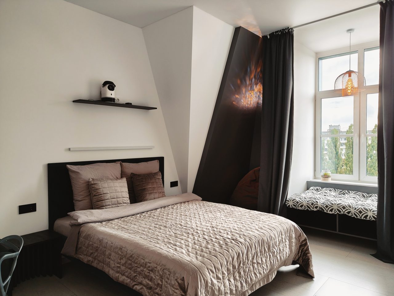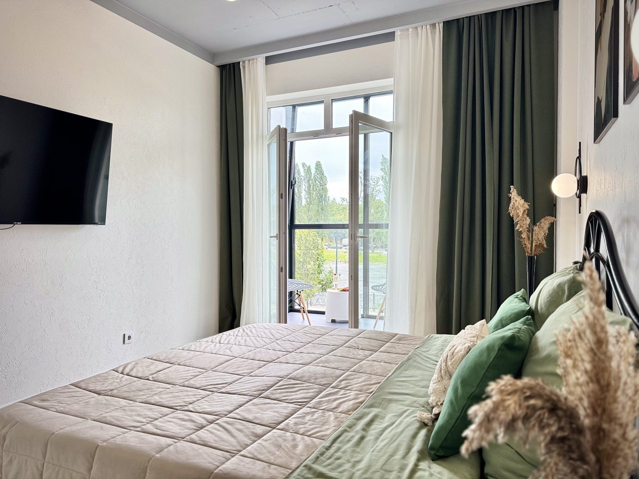 К размещению предлагаются уютные апартаменты оборудованные двуспальной кроватью, телевизором, большими окнами, розетками возле спального места и др. Доступна точка wi-fi. Санузел оснащен современной сантехникой, средствами личной гигиены, гигиеническим душем.