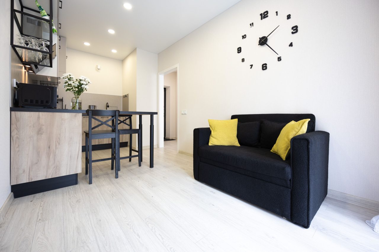 Внутри вас ожидает два удобных дивана, телевизор, вместительный шкаф, балкон с зоной отдыха, стильный санузел с тропическим душем и стиральной машиной.