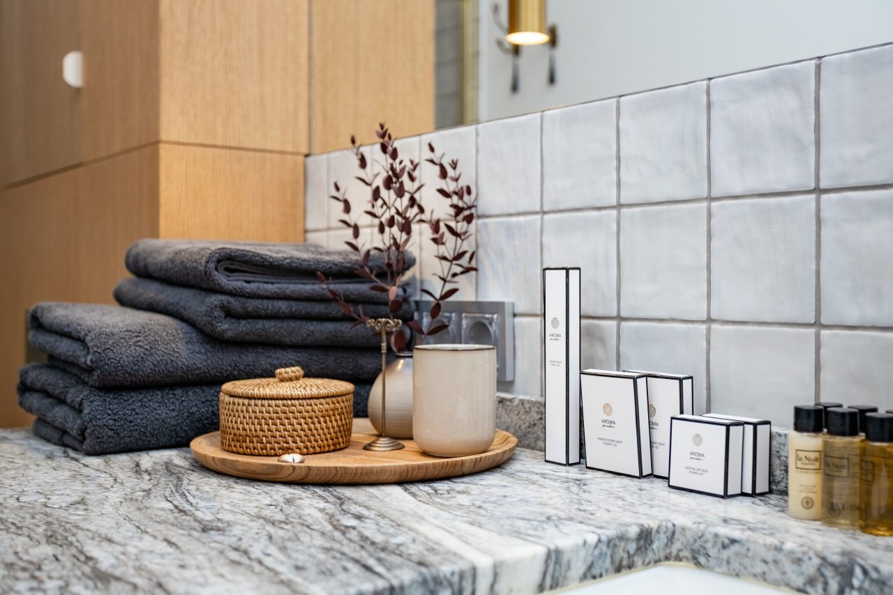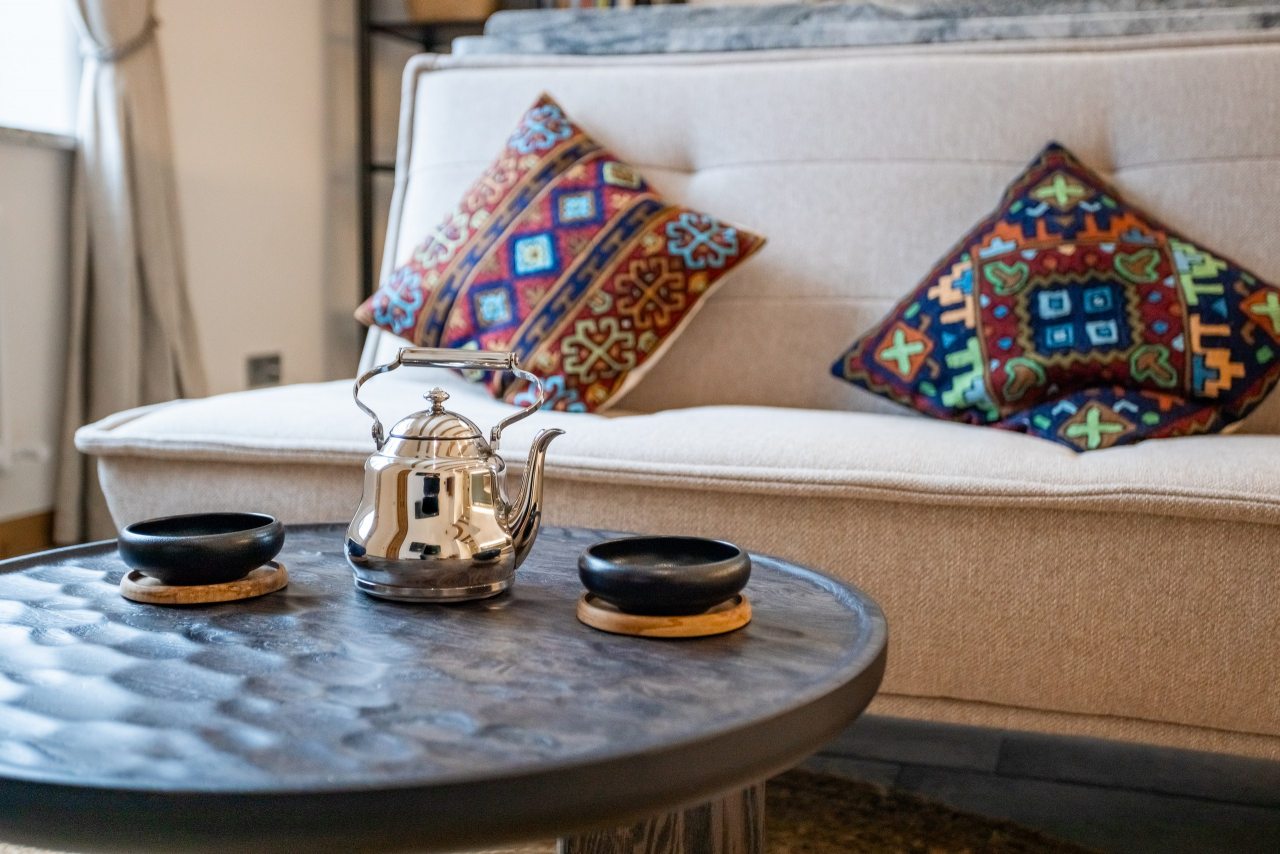 Внутри продумана каждая деталь для комфорта гостей, включая большую двуспальную кровать с качественным матрасом, мягкое кресло с лампой для чтения, удобный диван напротив ЖК-телевизора, санузел с душевой, раковиной, туалетом.