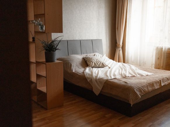 От центра далековато, но зато отличные условия в самой квартире. Нет этого советского стиля, все современно и комфортно. Техника относительно новая, квартира просторная.