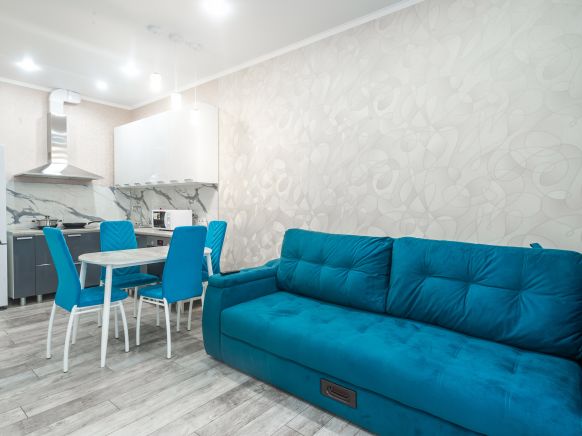 Апартаменты находятся в тихом месте с охраняемой стоянкой. Заселение было бесконтактным: администратор прислал инструкцию по заселению и мы без проблем попали в квартиру на 2-м этаже. Чисто, свежо, 2 дивана, 1-о и 2-х спальные кровати с удобными матрасами и чистым бельём. Имеется большой телевизор на стене, шкаф для одежды и для белья. В ванной стиральная машина. На балконе сушилка. На кухне имеется необходимая посуда, микроволновка, холодильник. Есть возможность приготовления пищи. Ночевали одну ночь. Рекомендую в первую очередь тем, кто приедет в город на машине. Так как где находятся остановки общественного транспорта мы не успели разглядеть. Хотя видели что трамвайные пути находятся неподалеку.