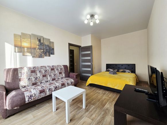 Стильная квартира, без избытка, но каждая деталь на месте. Понравились картины и элементы декора — чувствуется индивидуальность. Удобно, что поблизости есть остановка — до вокзала добрались без проблем. Внутри всё аккуратно и продуманно, даже свет в ванной оказался удивительно мягким. Пространство хорошо зонировано, не мешали друг другу даже с соседкой. Приятно было наблюдать закат с окна спальни — невероятная цветовая гамма.