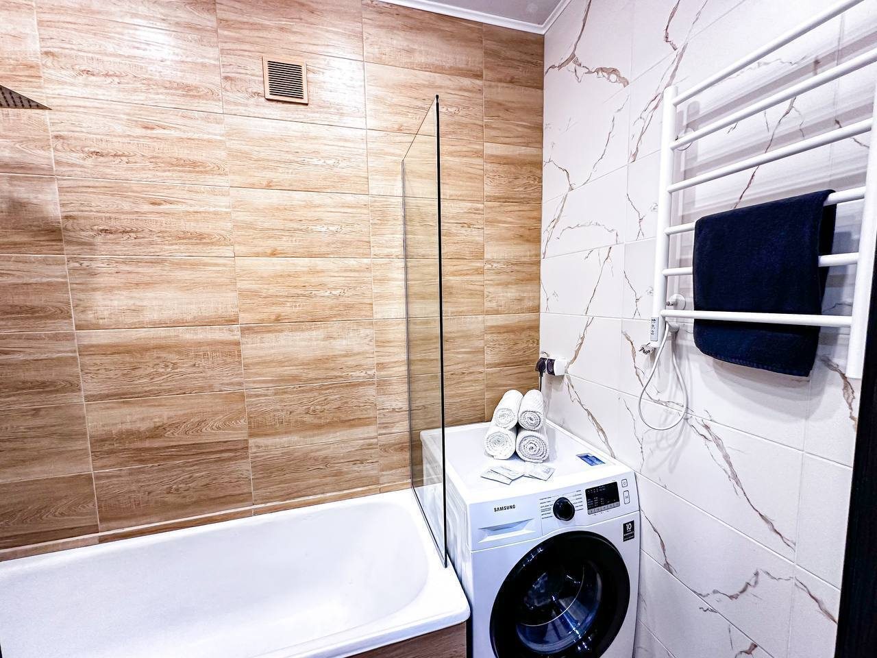 Двухкомнатная квартира с современным ремонтом имеет все необходимое для комфортного проживания, например: удобную двуспальную кровать с чистым комплектом постельного белья, прикроватные тумбы, затемненные шторы, ЖК-телевизор с кабельным телевидением, точку высокоскоростного интернета, собственную ванную комнату и др. Санузел оснащен качественной сантехникой, полотенцесушителем, стиральной машиной.