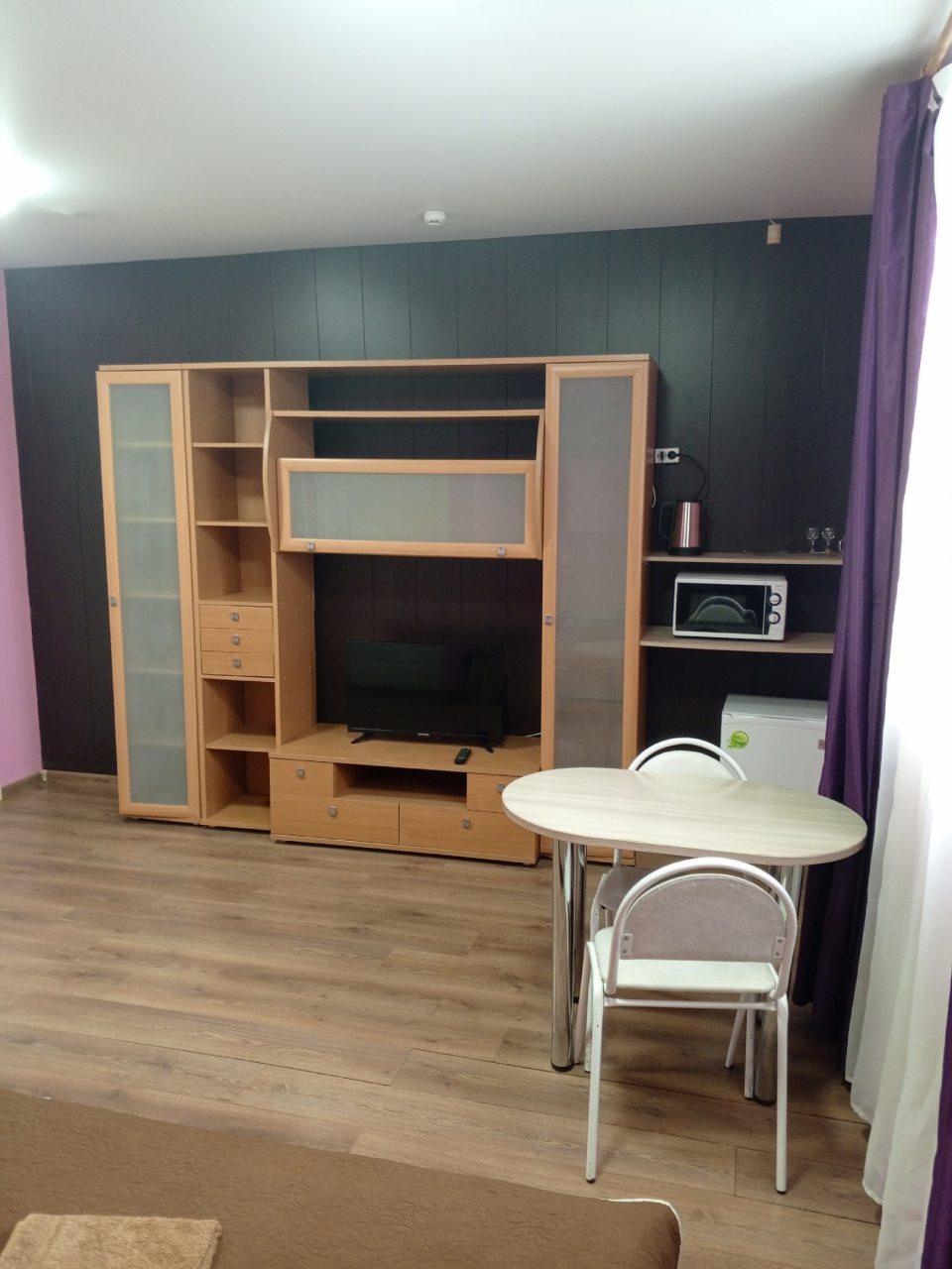 Для организации перекусов в номере имеется чайник, холодильник и микроволновая печь.