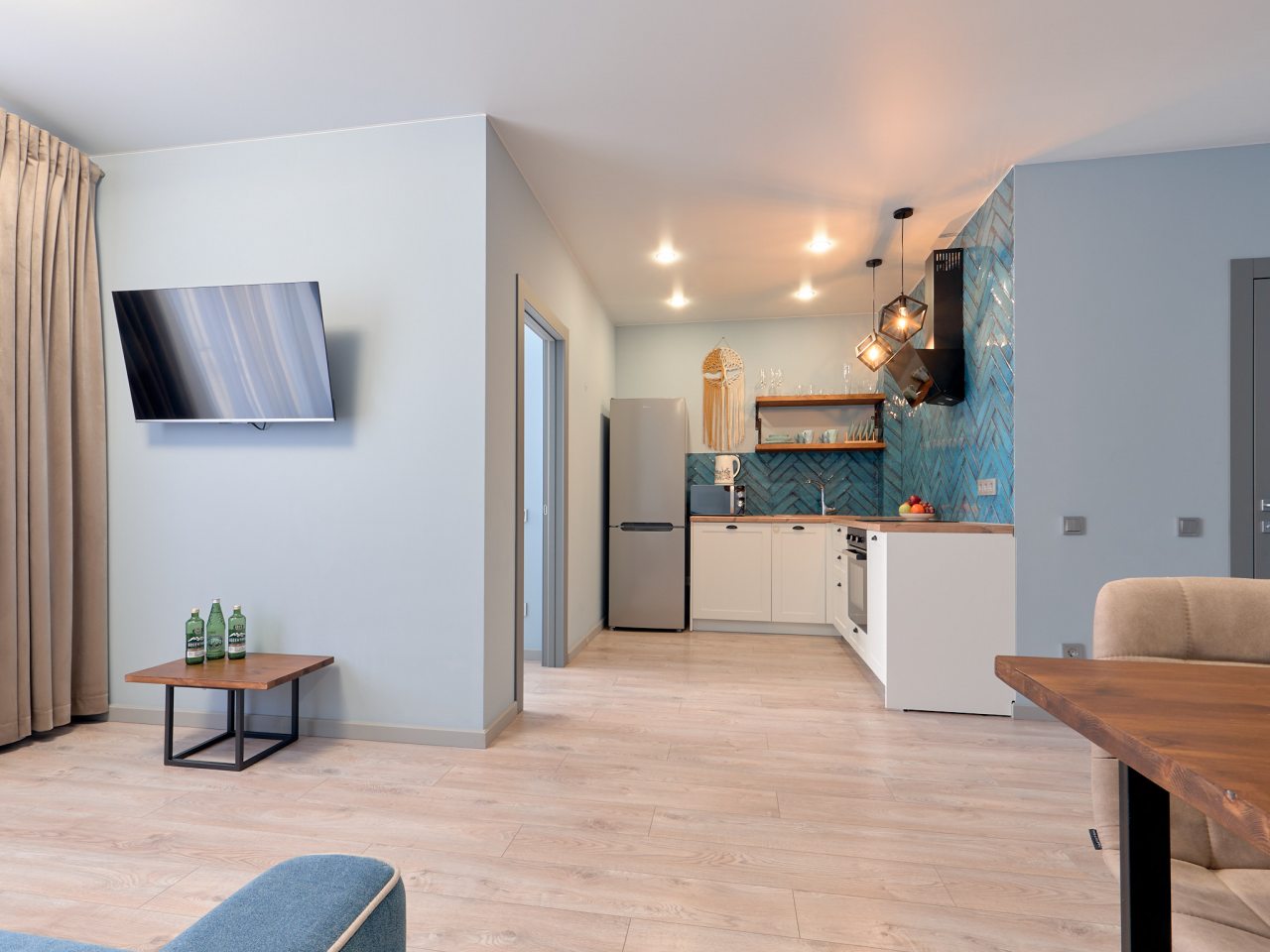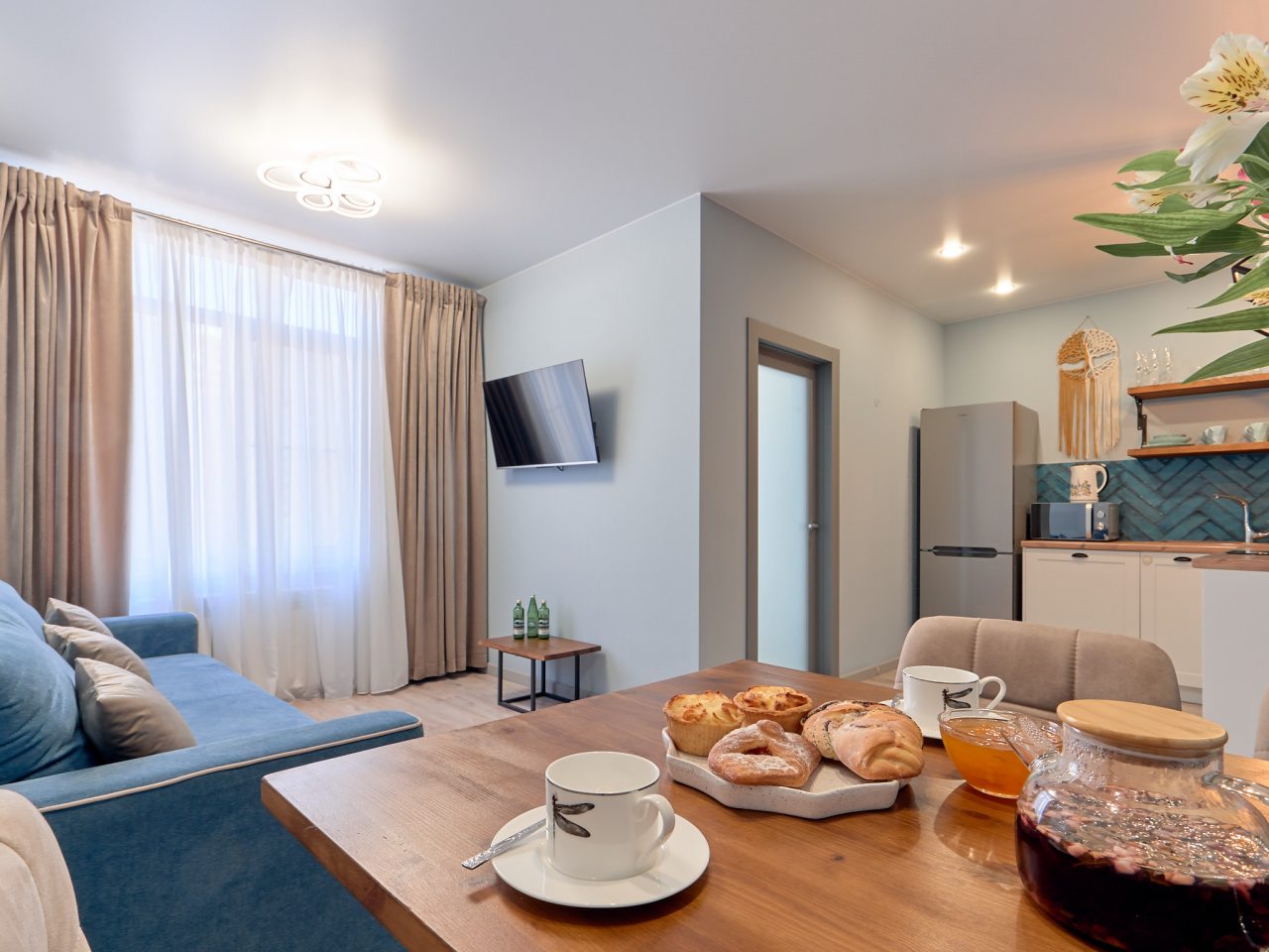 Стильные апартаменты оснащены двуспальной кроватью, шкафом-купе, диваном, ЖК-телевизором с цифровым телевидением, точкой высокоскоростного интернета и балконом с красивым видом. Санузел укомплектован современной сантехникой и средствами личной гигиены.