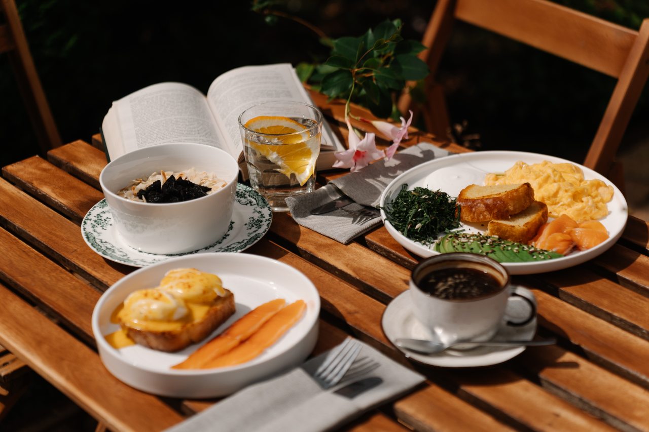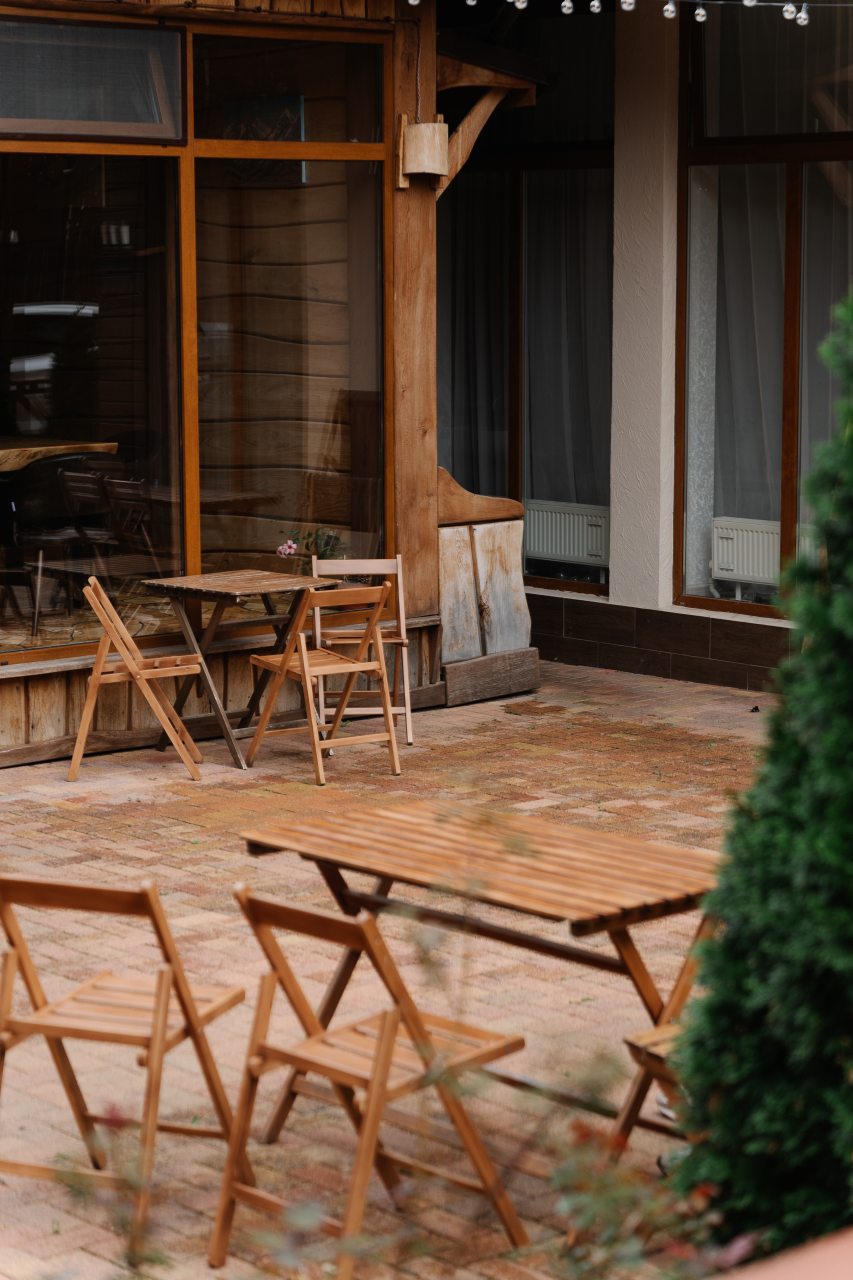 Установлены электрические чайники, кофеварки и холодильники, а также оборудована обеденная она на свежем воздухе. Осуществляется доставка еды и напитков в помещения, недалеко от гостиницы работают кафе, бары и рестораны.