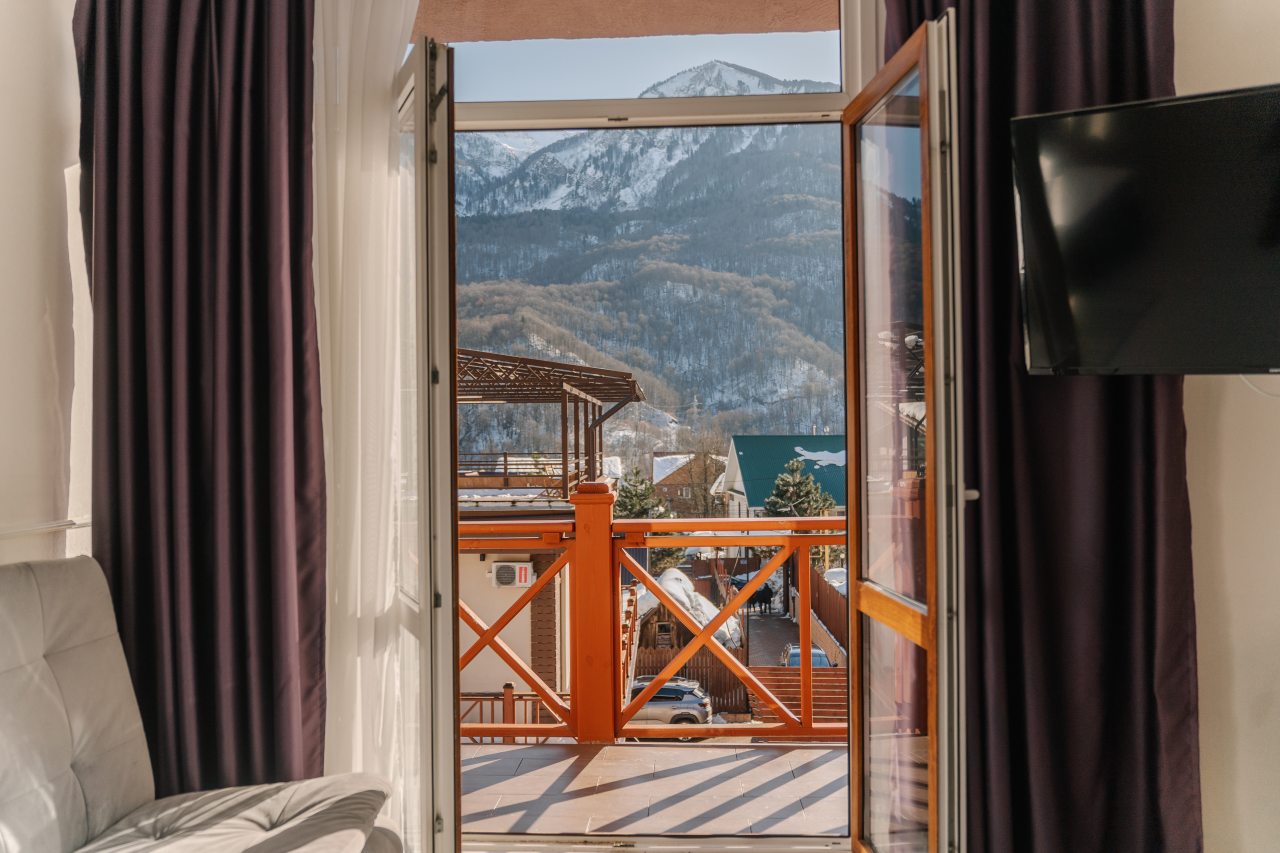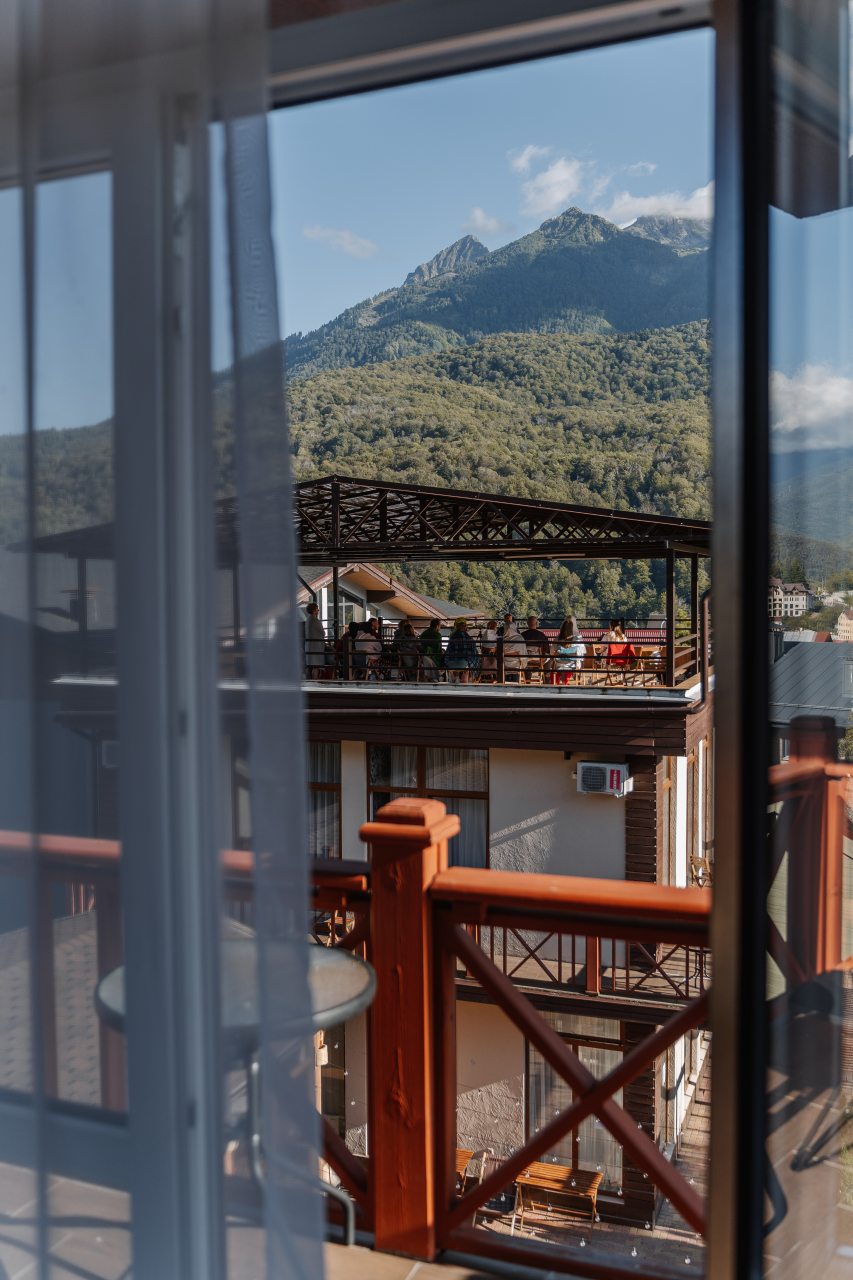 Очень красивый и удобный номер с панорамными окнами и красивым видом на горы! В номере чисто и уютно!