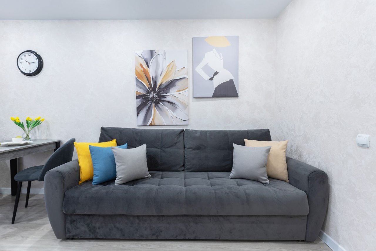 Это отличный вариант для размещения семьей или компанией, так как на площади 60 квадратных метров имеются две удобные двуспальные кровати, вместительный диван с телевизором, плотные шторы для качественного сна, ванная комната со стиральной машиной.