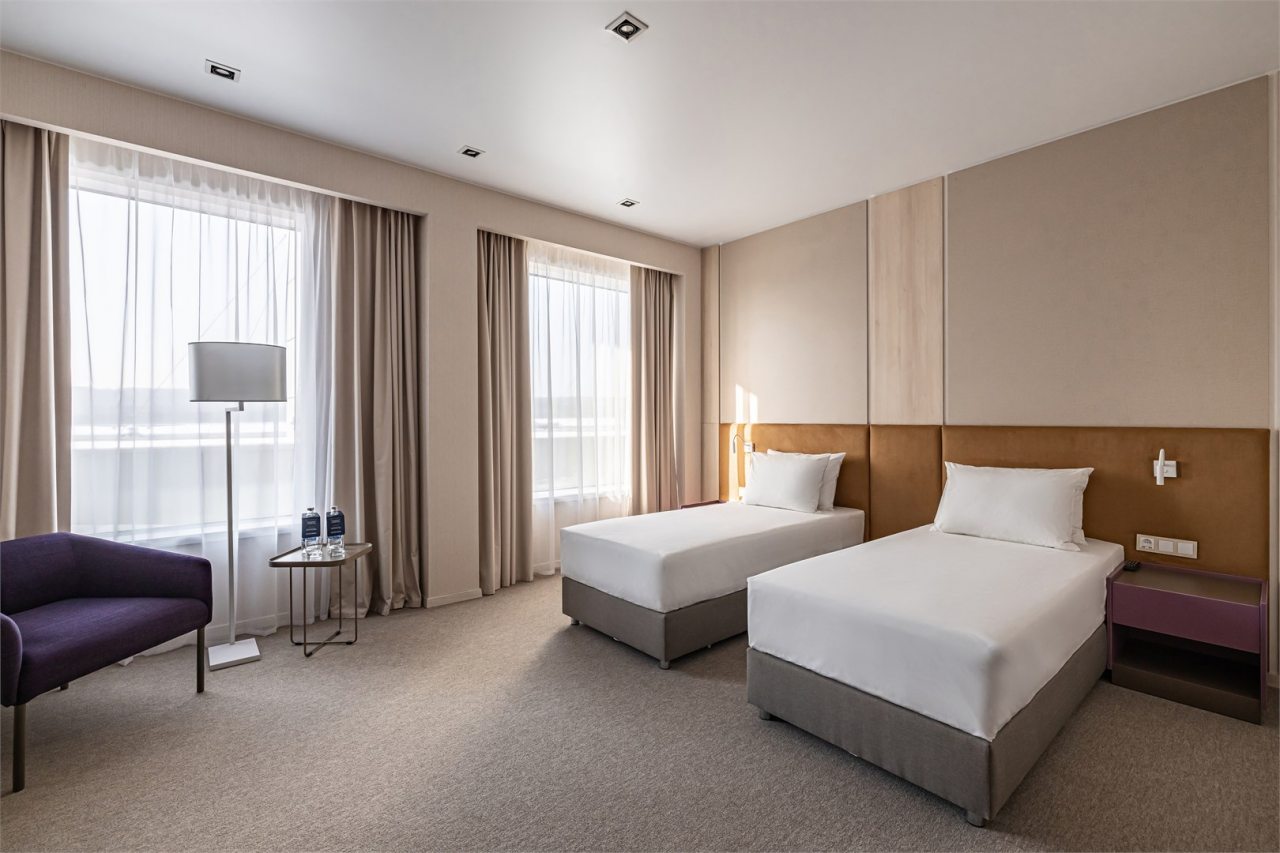 Среди дополнительных удобств отеля — зона коворкинга, химчистка, вызов такси, хранение багажа, кофе-поинт, уютная зона отдыха. Расстояние до железнодорожного вокзала — 29 км.