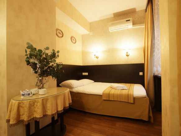 Светлые номера укомплектованы функциональной мебелью, телевизорами и сплит-системой. В ванной комнате есть стандартный набор сантехники и туалетные принадлежности, фен.