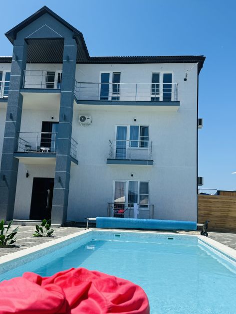 Проводили в этом гостевом доме наш небольшой отпуск, общая оценка конечно 5. Назвать супер комфортными условия не назовешь, но цена полностью соответствует качеству. Надо понимать, что кухня общая, обстановка простая, как и мебель, текстиль. Однако чисто в комнатах, на территории, что очень приятно. Море далековато, зато на территории разворачивают свой каркасный бассейн. Магазины рядом есть. Подробнее