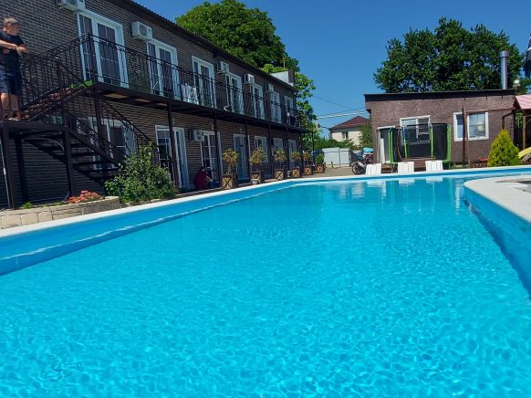 Чистота. Уютно. Красивая территория, которая вся окружена цветами. Есть кондиционер. Хорошая звукоизоляция в номере. На территории есть парковка, бассейн. Стоит сказать, что хозяева - хорошие и приветливые люди.