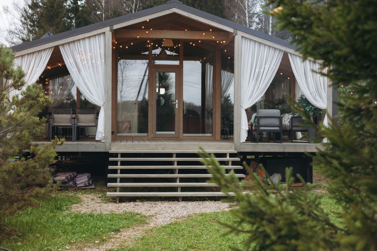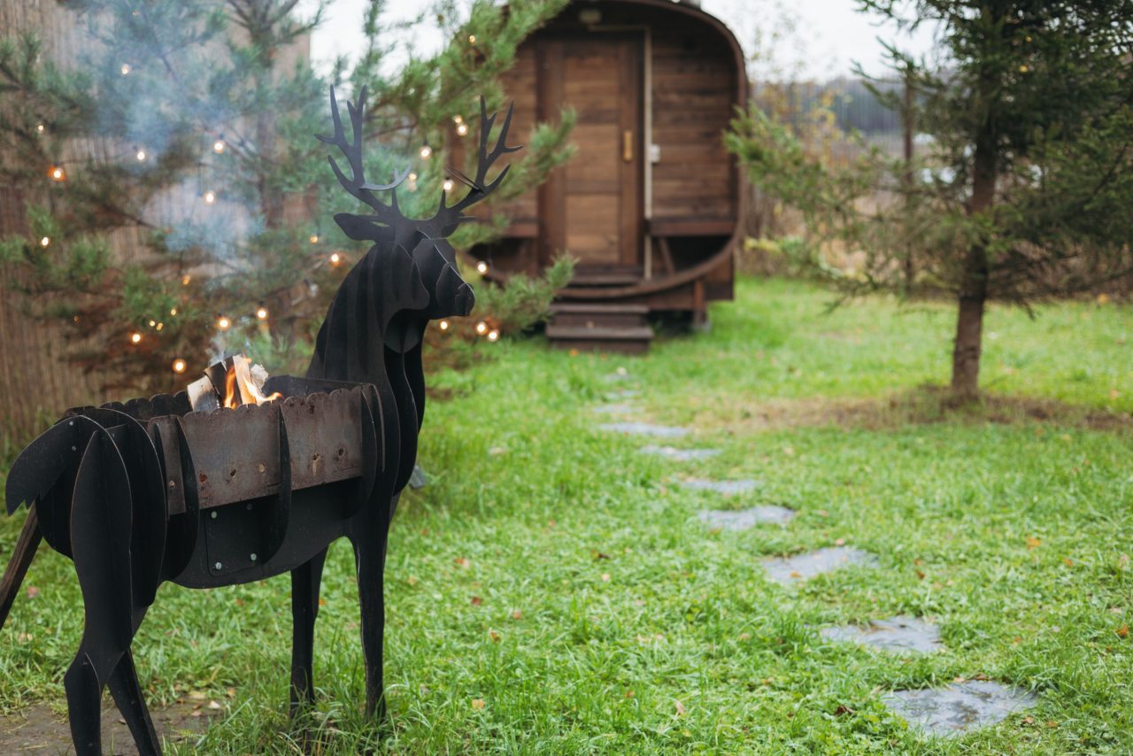 На улице оборудована зона для барбекю. Установлена баня бочка (входит в стоимость проживания). Также есть возможность покататься на SUP-доске и прогулять по зеленой территории, наслаждаясь чистым и свежим воздухом. Расстояние до аэропорта Внуково — 46 км, до железнодорожного вокзала Наро-Фоминска — 9,1 км.