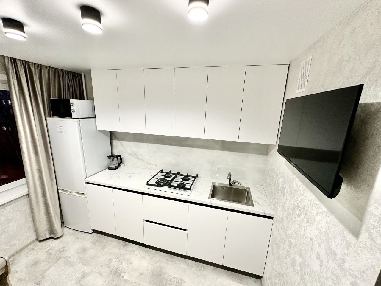 Большая, уютная квартира со всеми удобствами, расположение хорошее. Удобная транспортная развязка, легко доехать в любую точку города. В квартире есть телевизор, несколько спальных мест, на кухне - плита. чайник, микроволновка, холодильник - всё работает. Рядом есть продуктовые магазины и кафе.