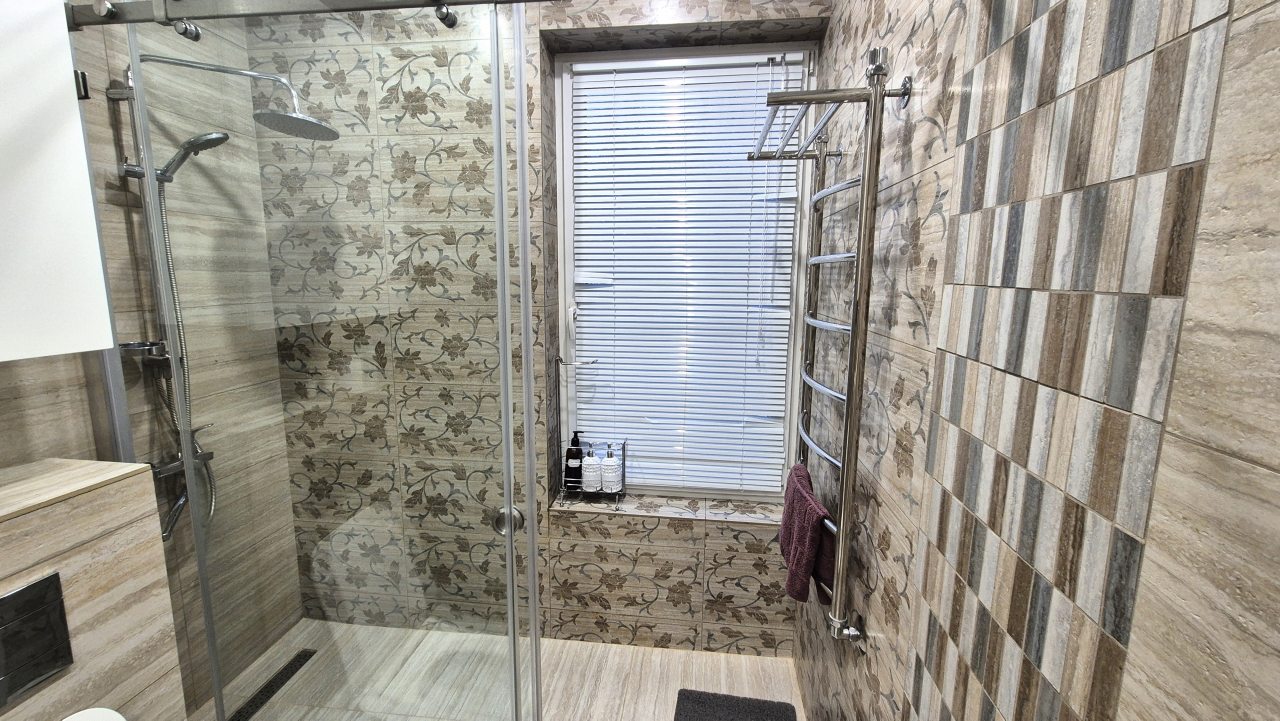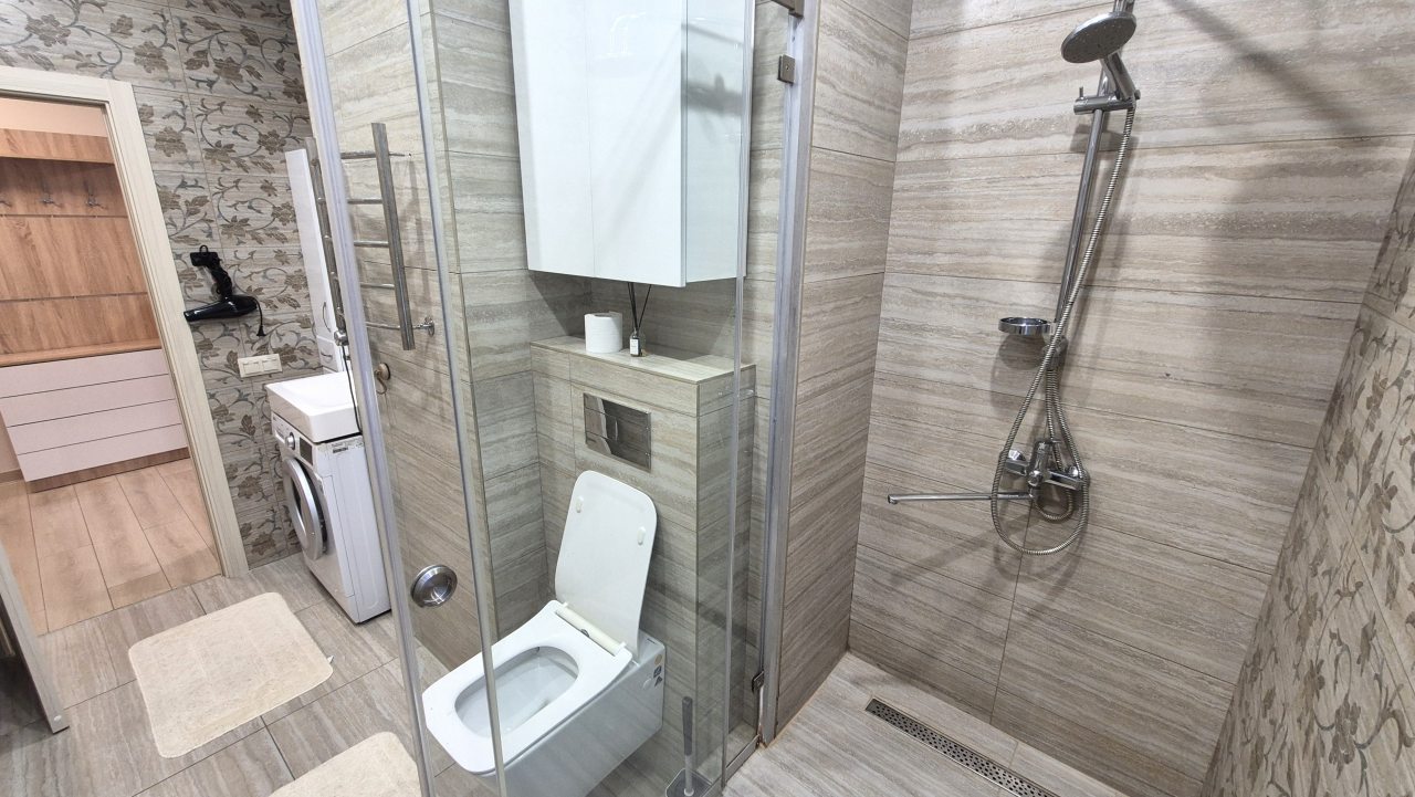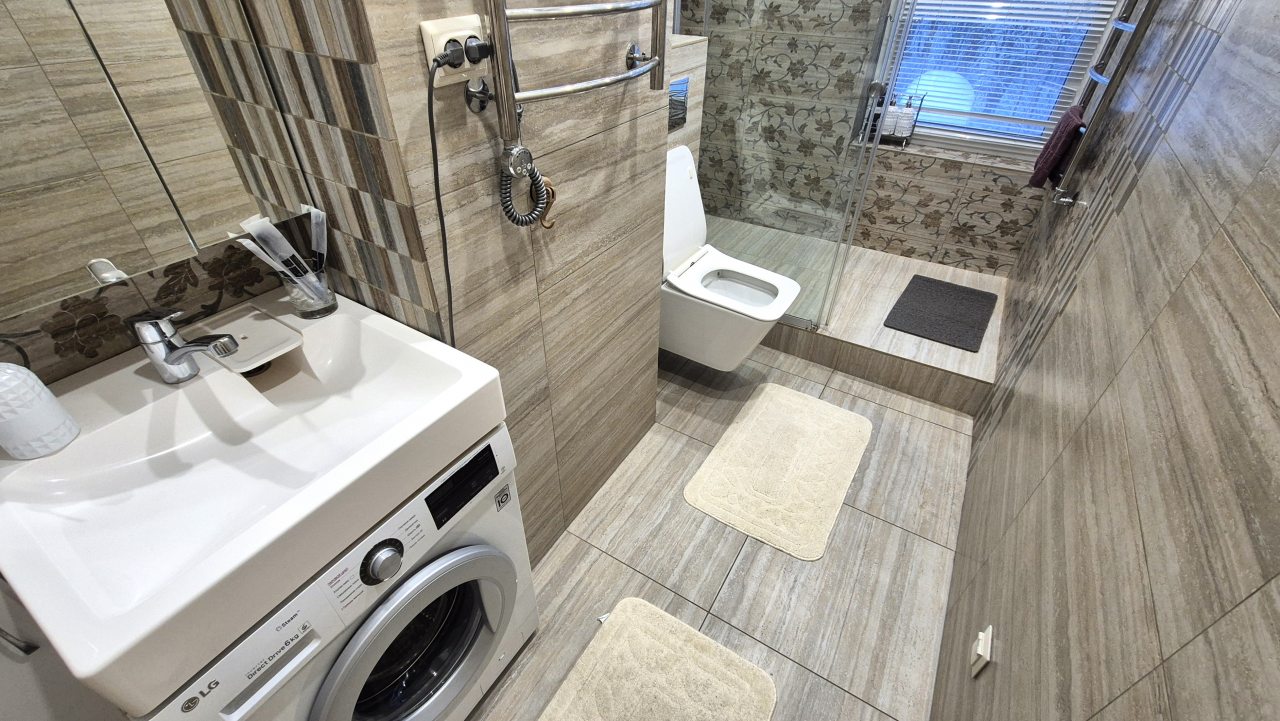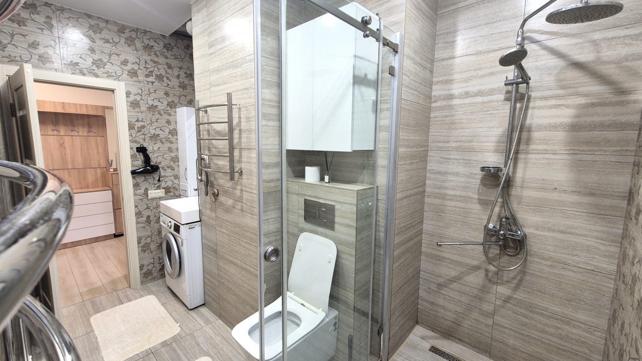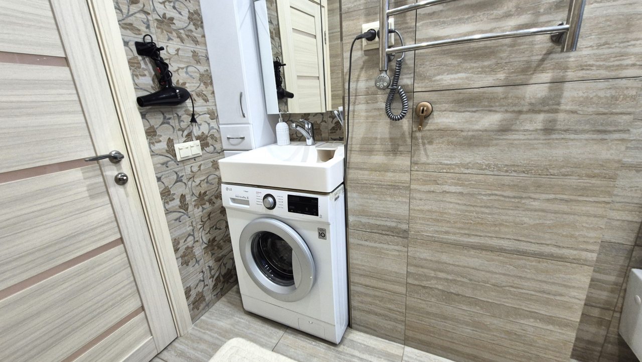 Кухонная зона оснащена стильным гарнитуром, духовым шкафом, вытяжкой, холодильником, варочной панелью, электрочайником. Пообедать можно в ближайшем кафе.