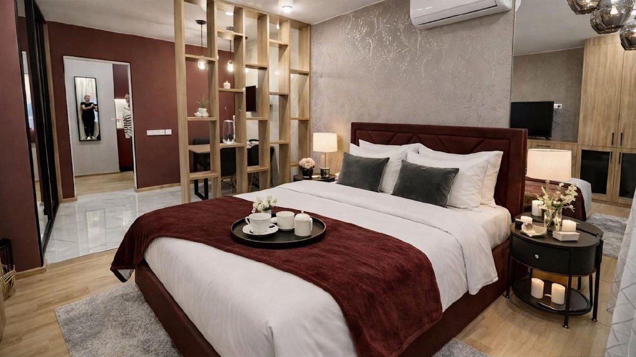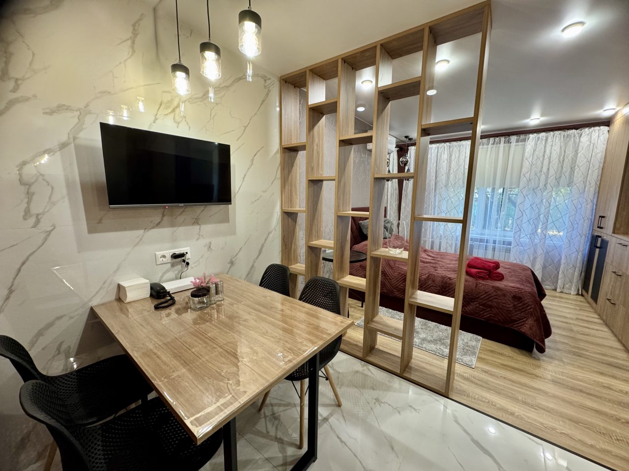 Для размещения представлено несколько вариантов, в каждом из которых есть всё необходимое для жизни и отдыха, включая удобную кровать, телевизор, вместительные шкафы, а также санузел со стиральной машиной.