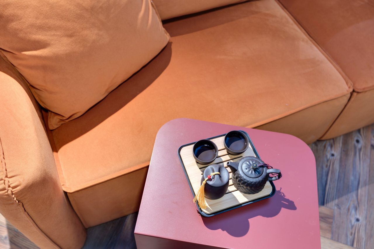 Внутри продумано всё до мелочей для комфорта гостей, включая большую и удобную кровать, мягкий диван, телевизор, кондиционер, вместительные шкафы, различные сценарии освещения, раздельный санузел с душевой и стиральной машиной.