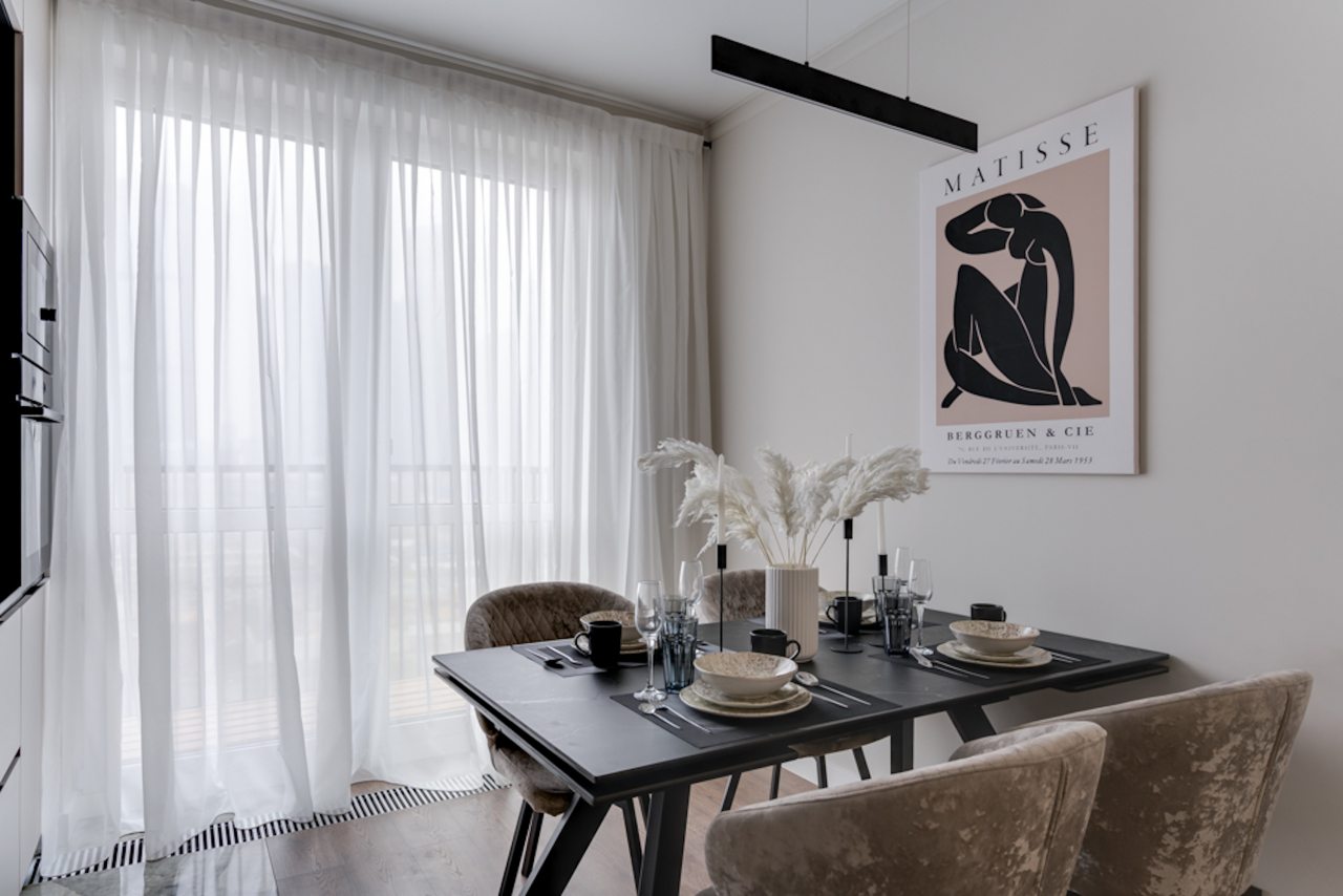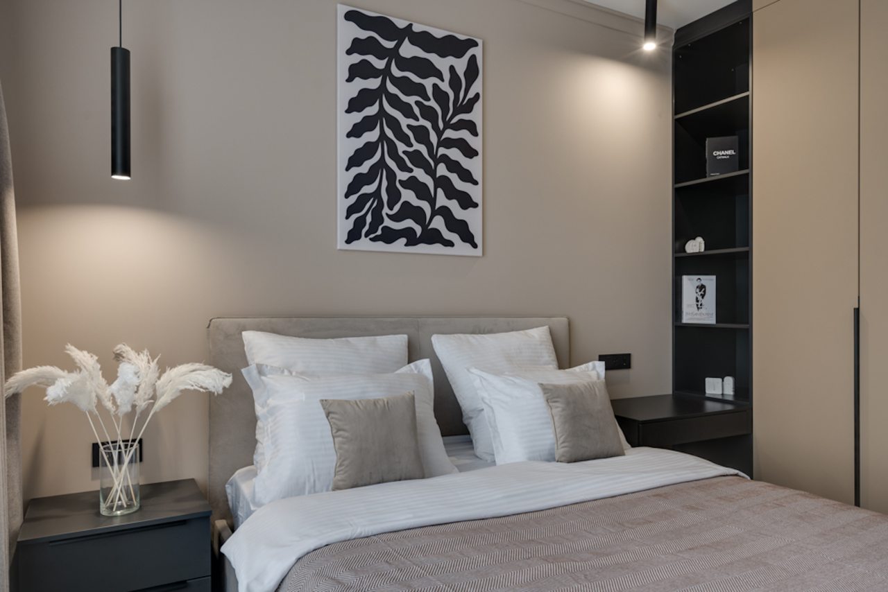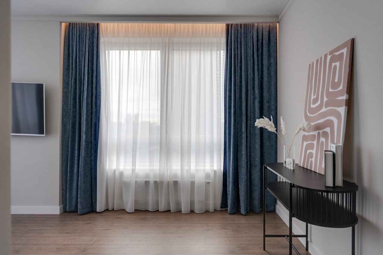 Стильные апартаменты с современным ремонтом оснащены двуспальной кроватью, диваном, розетками возле спального места, кондиционером, шкафом и др. Доступна точка высокоскоростного интернета и телевизор. Ванная комната оборудована качественной сантехникой.