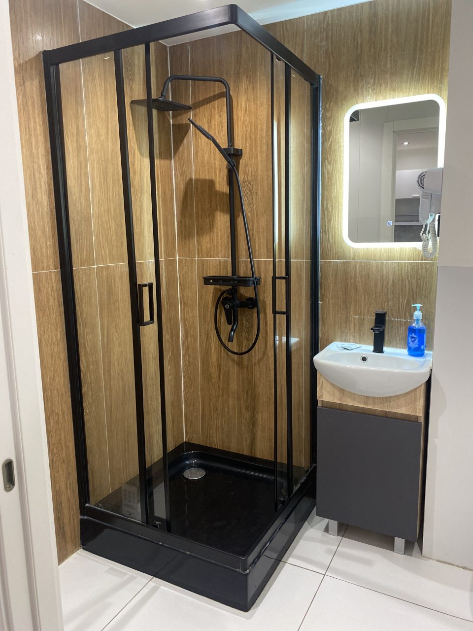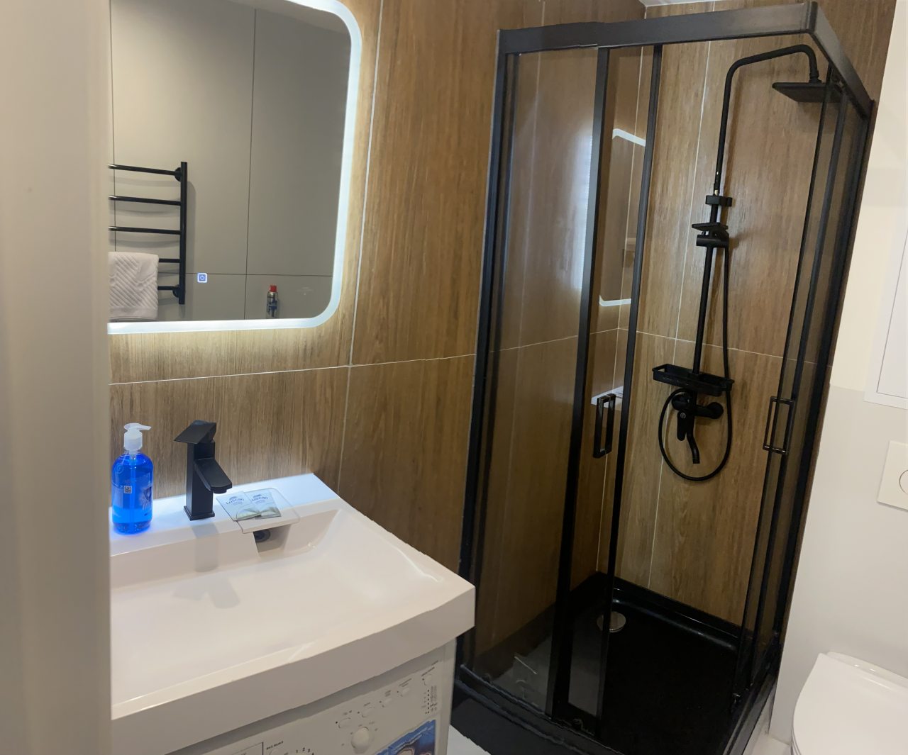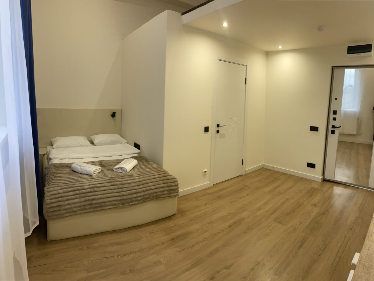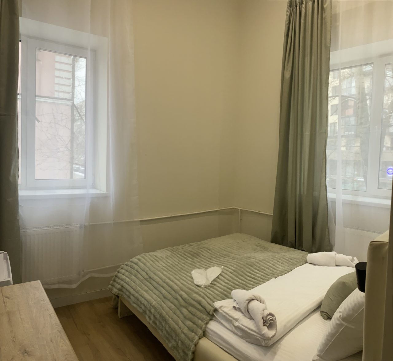 Апартаменты укомплектованы двуспальной кроватью с чистым комплектом постельного белья, телевизором, точкой высокоскоростного интернета и собственной ванной комнатой. Санузел оснащен душевой кабиной, зеркалом с подсветкой, настенным феном, стиральной машиной.