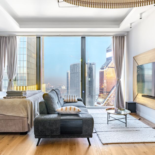 Забронируйте апартаменты с красивым панорамным видом из окон на Москву для фотосессии, свидания или комфортного пребывания в столице. Такие варианты размещения обычно имеют стильный дизайн и хорошее оснащение. В список услуг вы можете добавить джакузи, парковку, размещение с животными и другое.