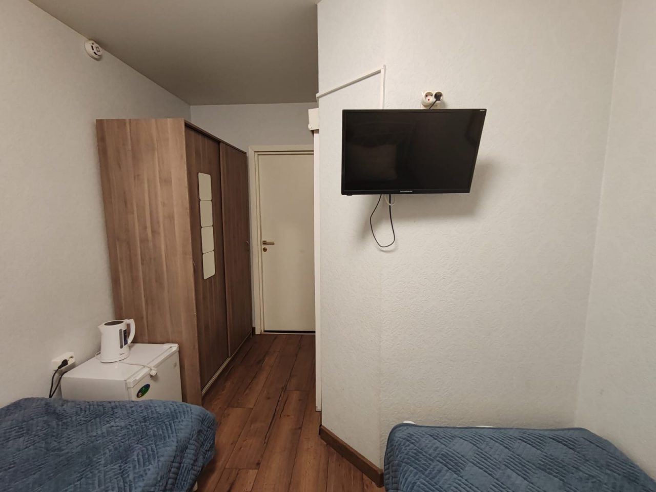 Для выбора доступны различные по вместимости номера. В каждом есть необходимая мебель и техника, в том числе удобные кровати, телевизор, шкаф, а также индивидуальный санузел с раковиной, душем, туалетом.