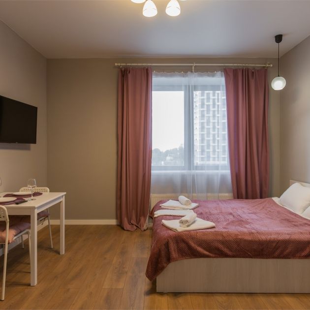 Апартаменты уютные и современные, находятся рядом с метро Аэропорт. Места в квартире достаточно, даже если будете отдыхать с ребенком. Кровать большая и уютная. Есть хороший вместительный шкаф. Санузел совмещенный, но он большой по площади и поэтому мы в нем не теснились. Кухня укомплектована отлично. Стоимость также невысокая. Нам все понравилось. Подробнее