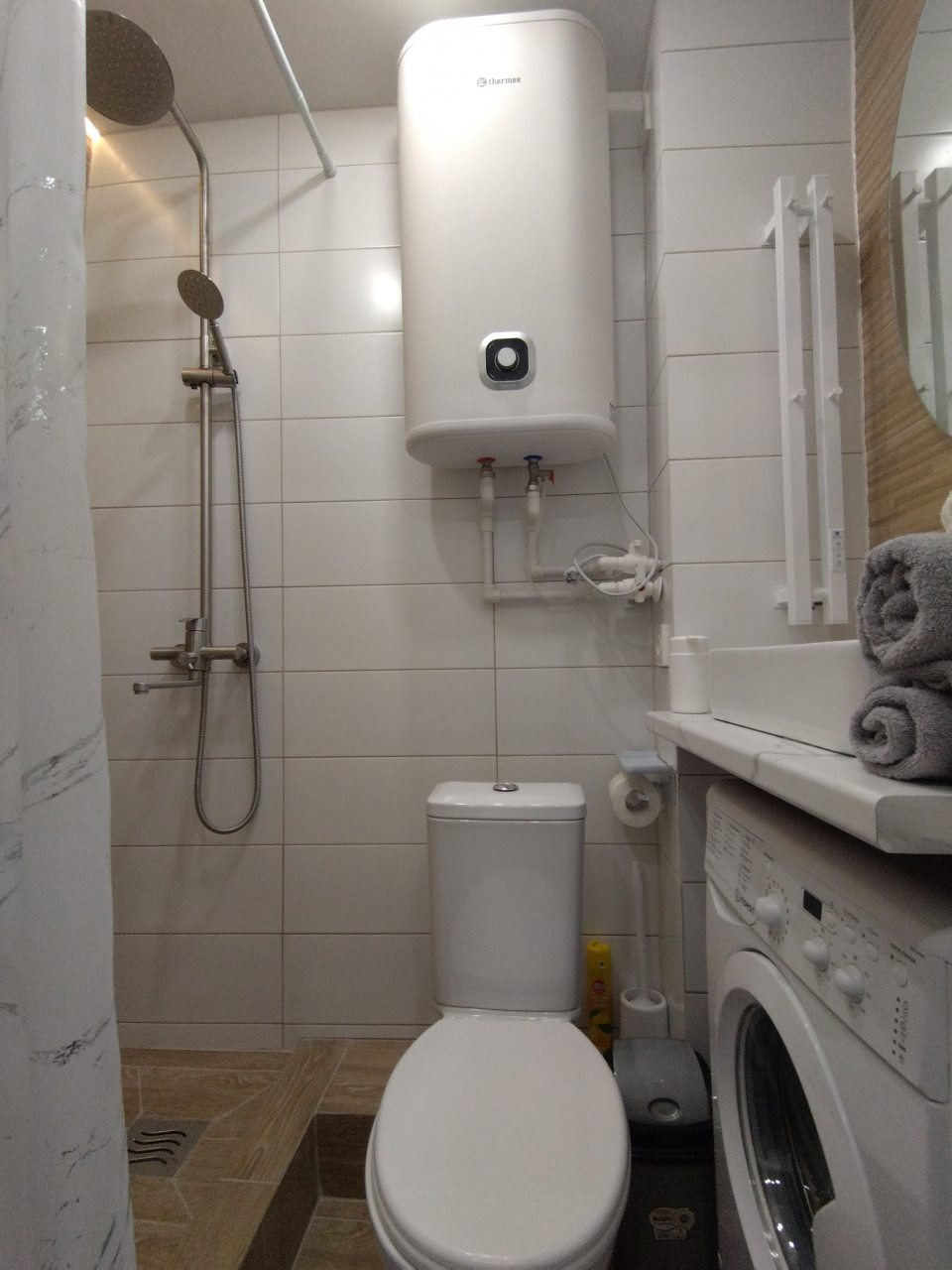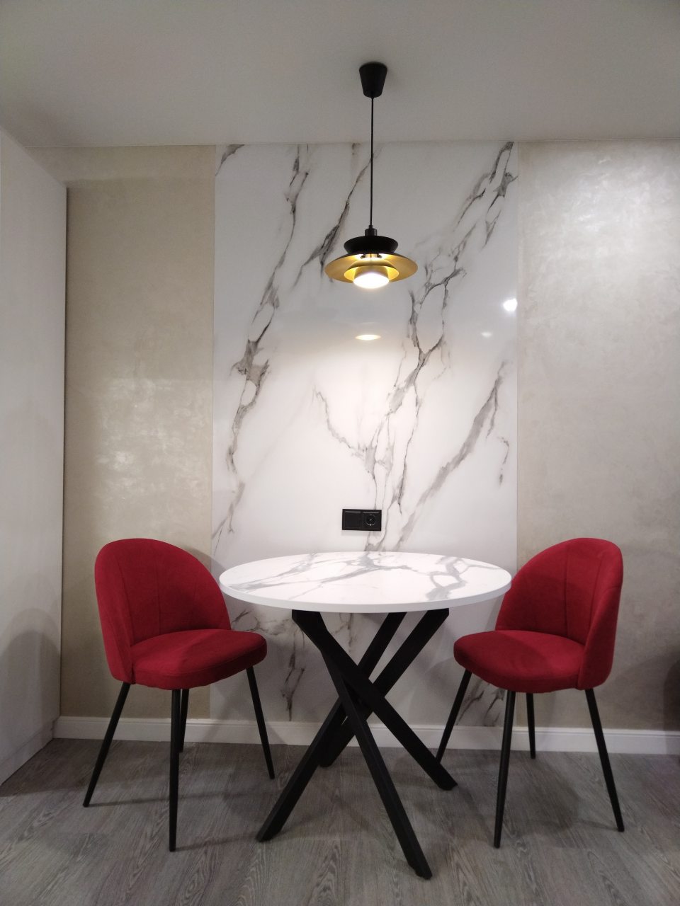 Кухня укомплектована белоснежным гарнитуром, обеденным столом и необходимой бытовой техникой. Пообедать можно в одном из ближайших кафе.
