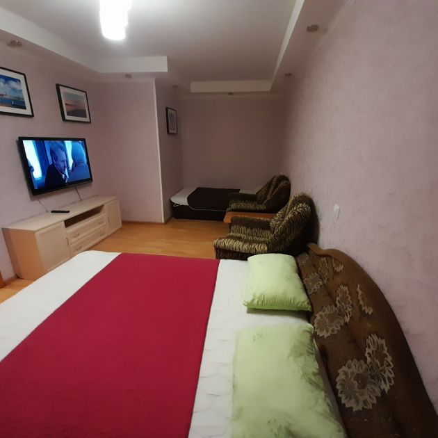 Апартаменты расположены почти в центре Мурманска, что уже можно назвать плюсом для этой квартиры. Обстановка внутри неплохая, ремонт конечно требуется, хочется посвежее. Но и те условия, которые сейчас есть, устроили. Тем более, цена очень хорошая для такого расположения и площади. Запахов лишних нет, мебель целая без потертостей и повреждений. Посуды много на кухне, техника в рабочем состоянии. Балкон есть, в нем мы ставили сушилку для одежды. Разместились в целом удобно. Подробнее