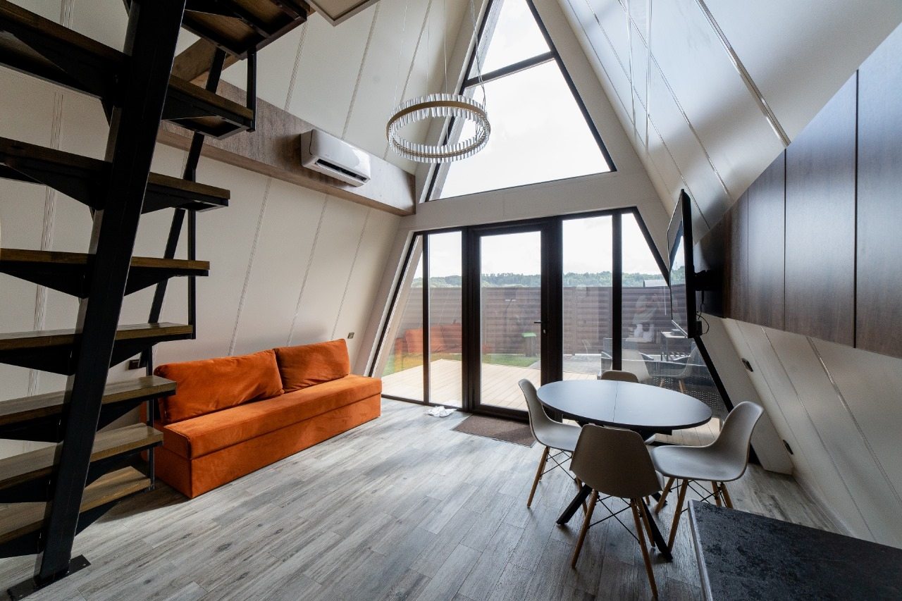 Гости могут разместиться в уютных домиках, которые оборудованы удобными спальными местами, диваном, кондиционером, телевизором, вешалками для верхней одежды, кухонной зоной и собственной ванной комнатой. Доступна точка Wi-Fi. Санузел оснащен современной сантехникой, полотенцесушителем и средствами личной гигиены.