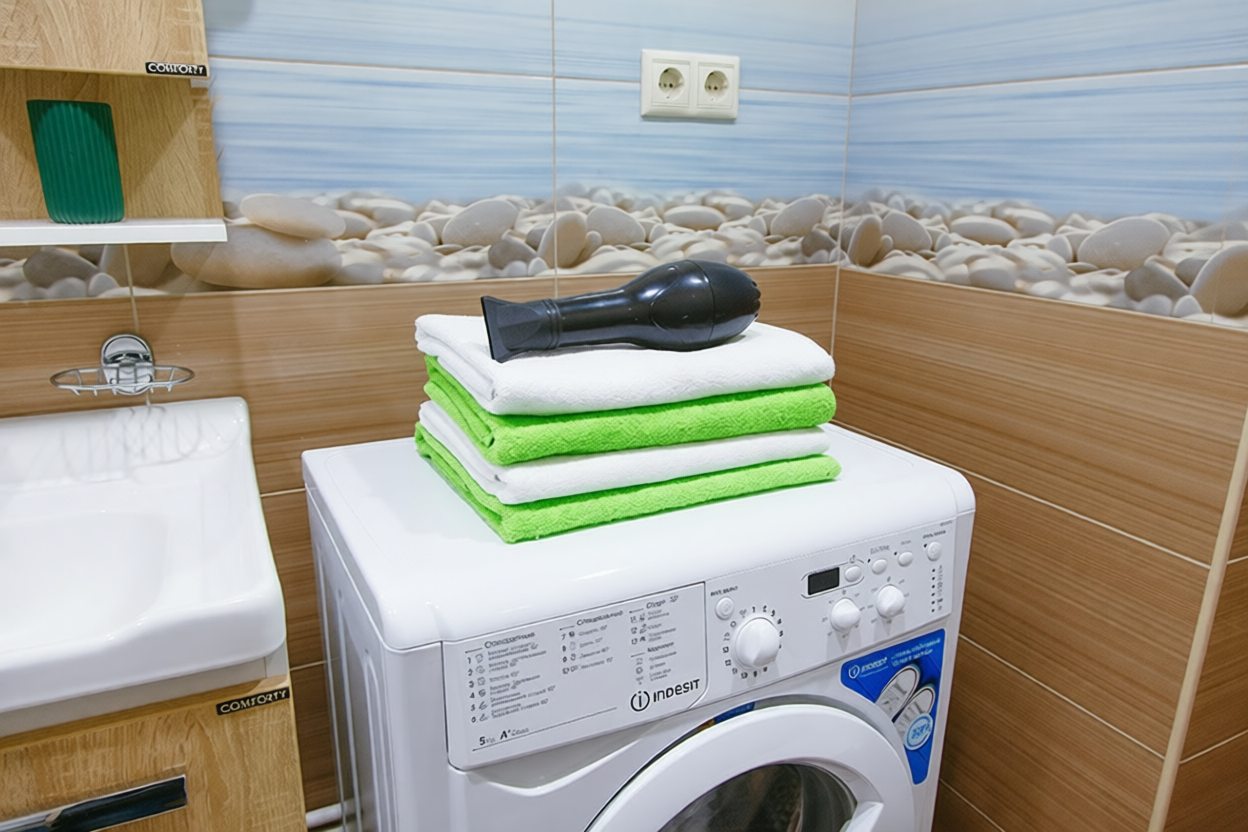 В апартаментах обустроены кровать, тумбочка со светильником, туалетный столик с пуфиком, письменный стол со стулом, шкаф, телевизор и Wi-Fi. Кроме этого, есть стиральная машина, гладильные принадлежности, набор полотенец, халаты, фен и водонагреватель.