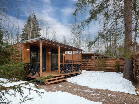 Место очень атмосферное — лес кругом, слышны только звуки природы. Вечером разжигали костёр и жарили маршмеллоу — дети в восторге. Домики чистые, с приятным запахом дерева. Есть где погулять, рядом ручей и тропинки. На территории всё удобно организовано, не чувствуешь себя в дикой глуши. Настоящее уединение без ощущения отрыва от цивилизации.