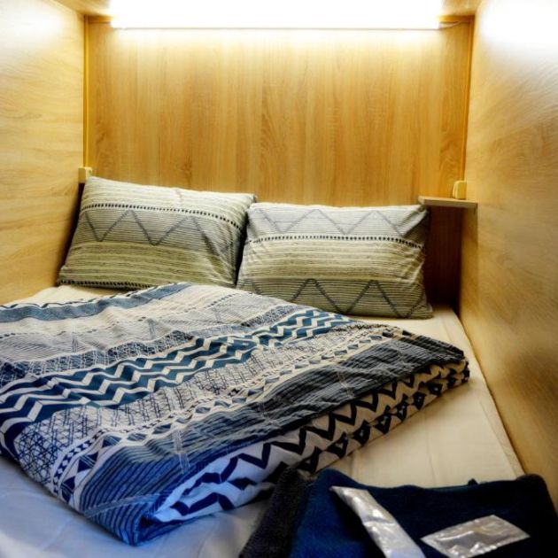 Здравствуйте,долго искали где переночевать до следующего рейса Нашли капсульный отель .цена вообще отличная Когда зашли так уютно .даже пообщались с мужчиной на кухне вместе кушали я и муж на ресепшен девушка очень хорошая есть душ ,туалет ,машинку стиральная всё новое и чистое идеальный ремонта спится там вообще шикарно Уютно ,конформно как дома если честно даже уходить не хотелось до аэропорта можно прогуляться даже пешком .в следующий раз там же остановимся Подробнее