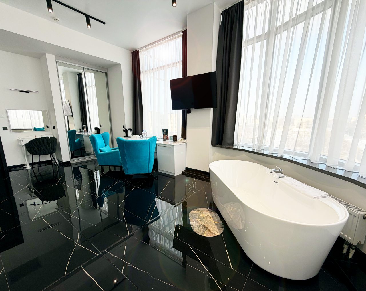 - При размещении более 2 человек рекомендуем выбрать категорию номера Двухкомнатный Семейный Люкс, в нем размещение возможно до 5 человек).