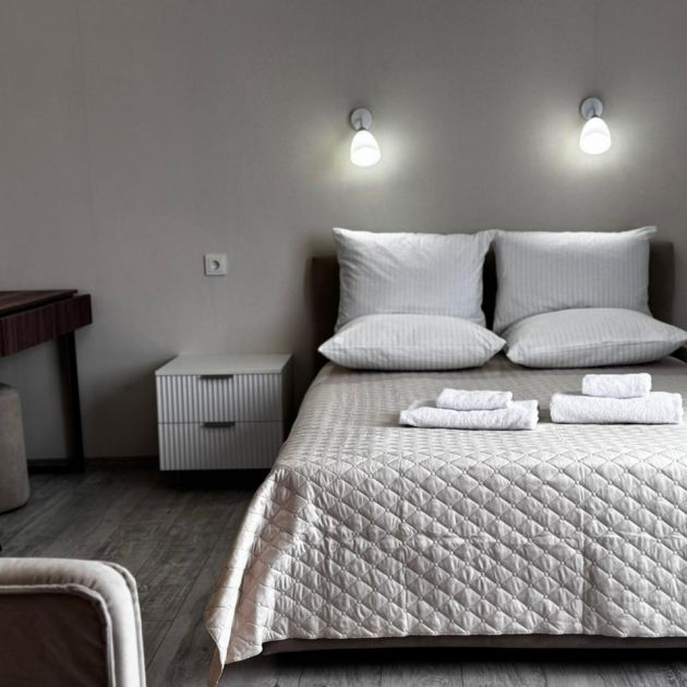 Удачное расположение в здании с 6 по 10 этажи находится отель,вход через центральный контрольный пункт вокзала.Мы жили на 8 этаже,тишина,комфорт и уют.Номер оснащен всем необходимым:ванная с душевой кабиной,большой по площади,телевизор,холодильник.Удобные кровати,хлопковое белье,полотенце.В номере чайник,стаканы,поднос.Сняли номер в этом отеле,потому что ездили на экскурсии,автобусы отходили от вокзала,очень удобно. Подробнее