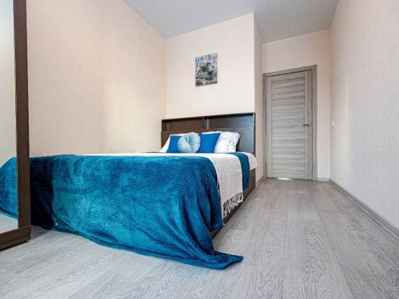 Трёхкомнатная квартира оснащена такими удобствами, как: современной техникой, комфортабельной мебелью, удобными кроватями, ванной комнатой, санузлом, гигиеническими принадлежностями. Есть доступ к сети Wi-Fi.
