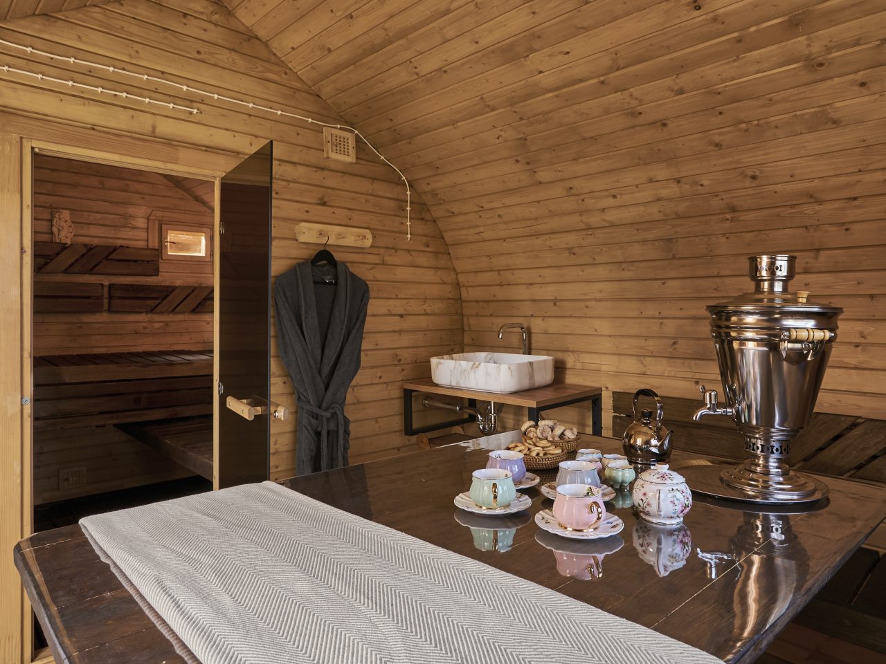 В распоряжении отдыхающих баня на дровах, уютная костровая зона для вечернего отдыха и общения. Расстояние до аэропорта — 67,2 км. Расстояние до железнодорожного вокзала — 62,4 км.