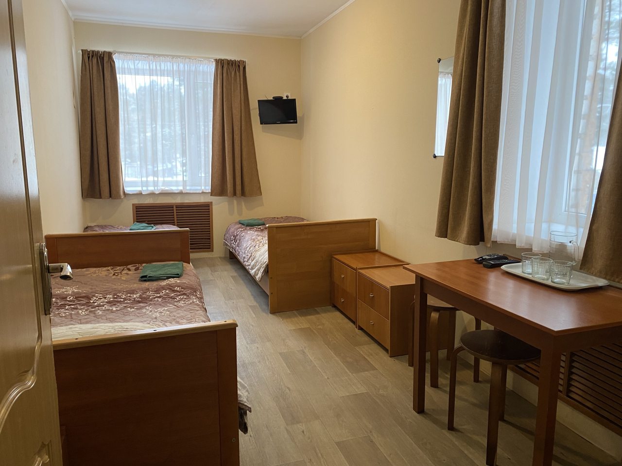 Гостиница неплохая, все простенько, чисто. Есть кафе, неплохо кормят. Рядом расположена лыжная база, поэтому в отеле жили спортсмены.