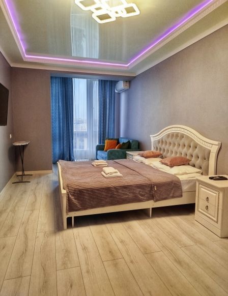 Для комфортного размещения есть все необходимое: удобная мебель, скоростной wi-fi, домофон, жк-телевизор, кондиционер, лифт. Удобство и развлечение маленьким гостям обеспечат: детские книги, музыка или фильмы, детские телеканалы. В ванной есть фен, стиральная машина, а также средства личной гигиены: набор полотенец, шампунь.