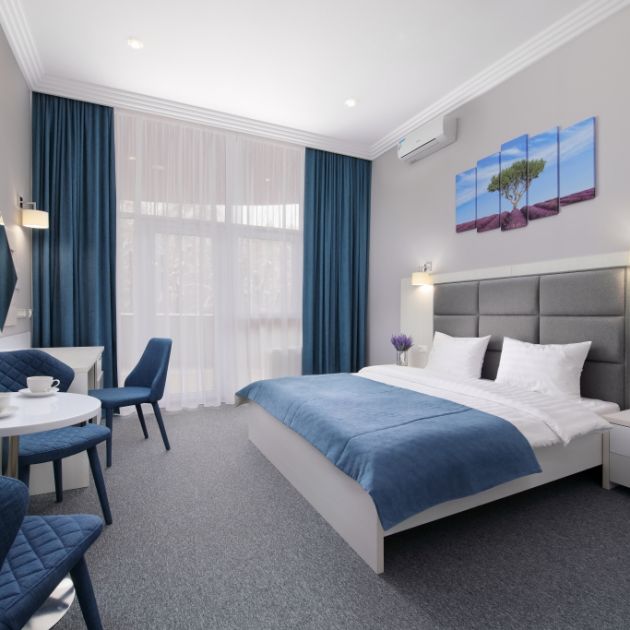 Номер просторный, мебель не потрёпанная, видно, что следят за состоянием. Кондиционер работает как надо, в жару спасал. Окна плотные, шума с улицы почти не слышно. Завтрак включён — ничего сверхъестественного, но сытно и вкусно. Вечером погулял по территории, всё ухожено, приятно находиться. Подробнее