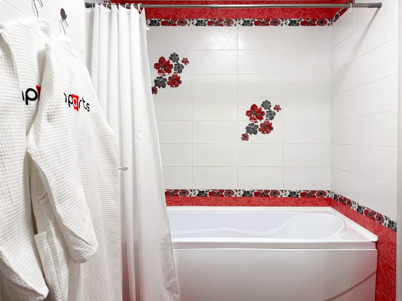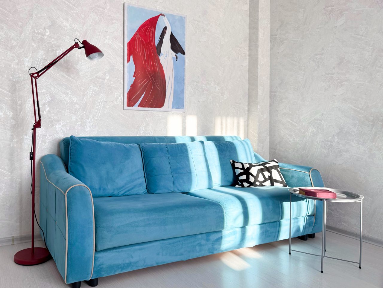 Квартира оснащена спальными местами, ванной комнатой с санузлом, современной техникой, мебелью. Также имеется доступ к сети интернет.