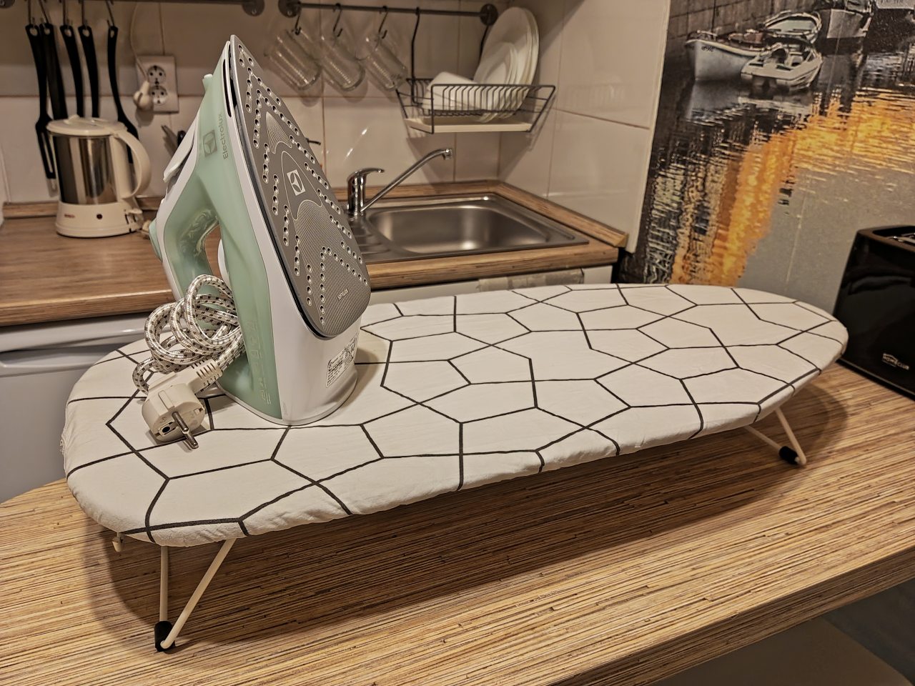 Кухонная зона оснащена мультиваркой, холодильником, чайником, тостером, микроволновой печью, кофемашиной и набором посуды. Пообедать можно в одном из ближайших кафе.