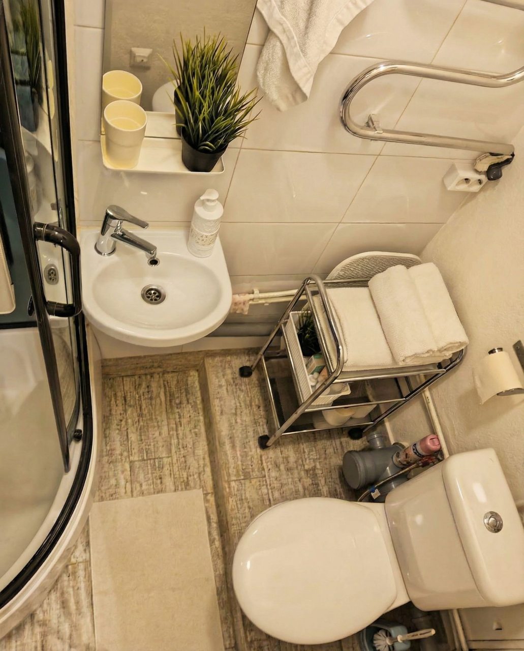 Уютные апартаменты оборудованы диваном, затемненными шторами, телевизором, сейфом, гладильными принадлежностями и wi-fi. Санузел укомплектован душевой кабиной, полотенцесушителем, гигиеническими средствами, феном.