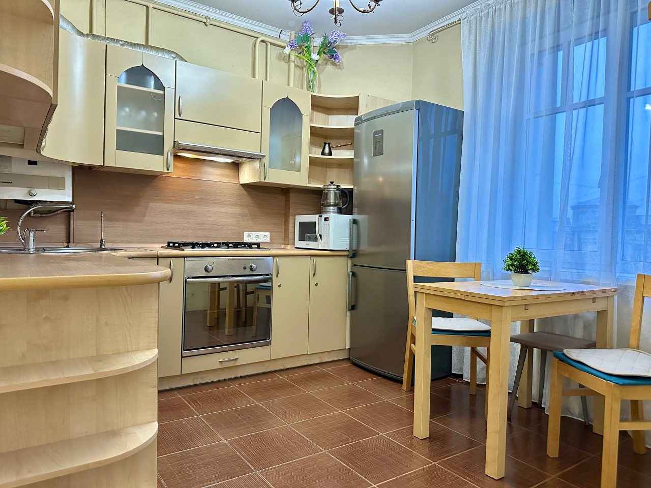 Кухня позволит вам готовить любимые блюда и напитки, так как в наличии духовой шкаф, плита, чайник, СВЧ, холодильник, обеденная зона.
