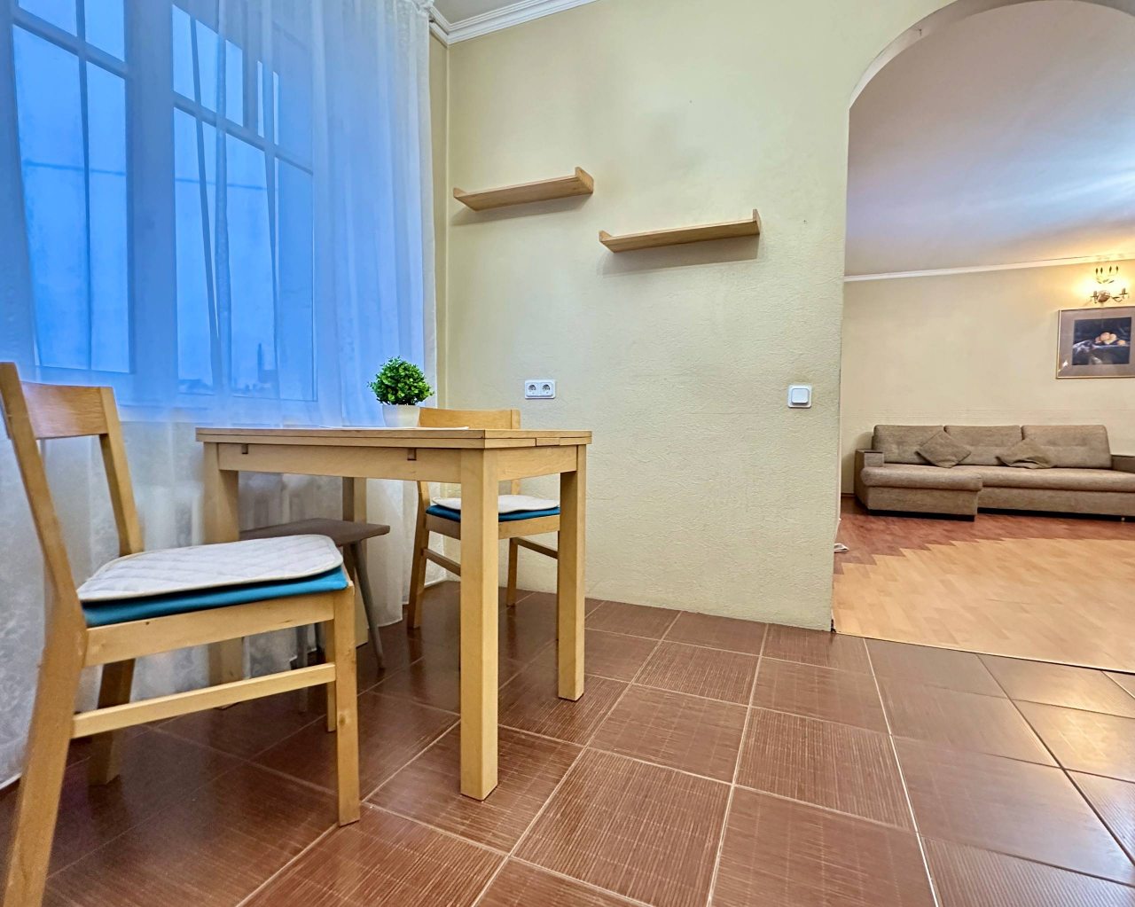 Приехала по рабочим делам на пару дней в Питер и решила на это время снять эти апартаменты. В квартире достаточно место, чтоб чувствовать себя комфортно. Красивая люстра. Кухня просторная. Кровать удобная.