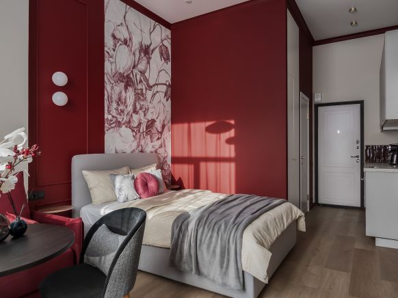 На площади в 38 квадратных метров вас ожидает мягкая двуспальная кровать, диван-кровать, набор свежих полотенец, затемненные шторы, ЖК-телевизор, доступ в интернет, а также светлый санузел, укомплектованный полноценной ванной, где будет приятно расслабиться. В коридоре — вместительный шкаф-купе с зеркалом.