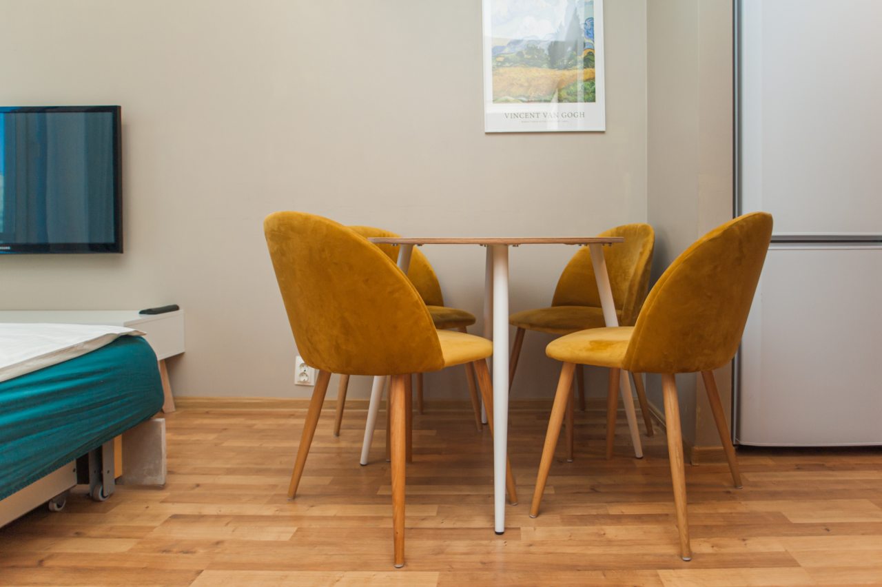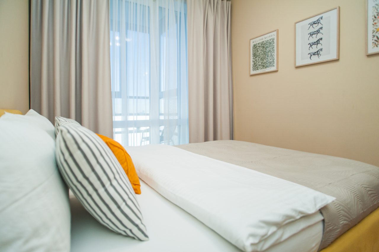 Апартаменты оснащены удобной мебелью, доступом к интернету, телевизором и балконом. Есть и своя ванная комната со средствами личной гигиены, феном и стиральной машиной.