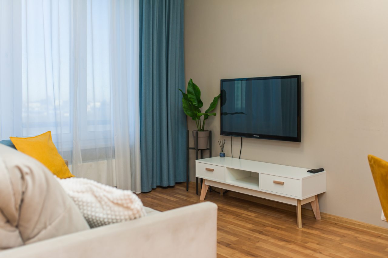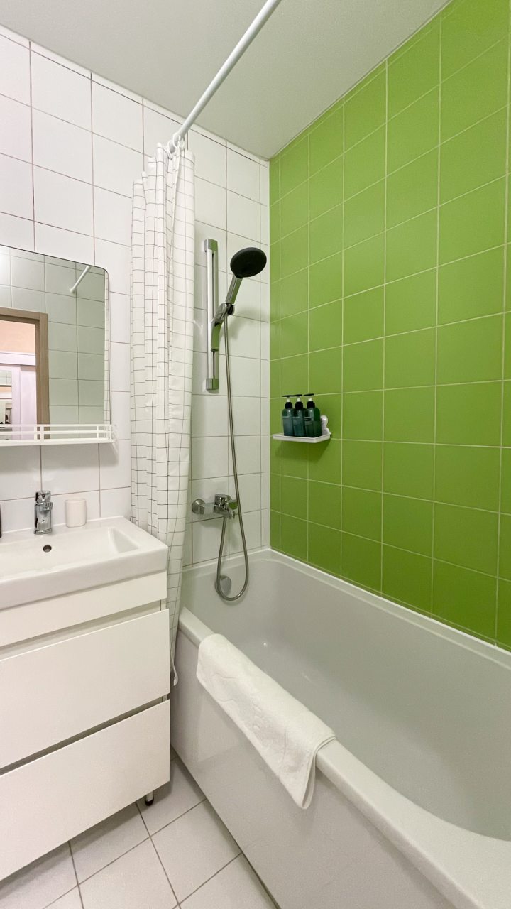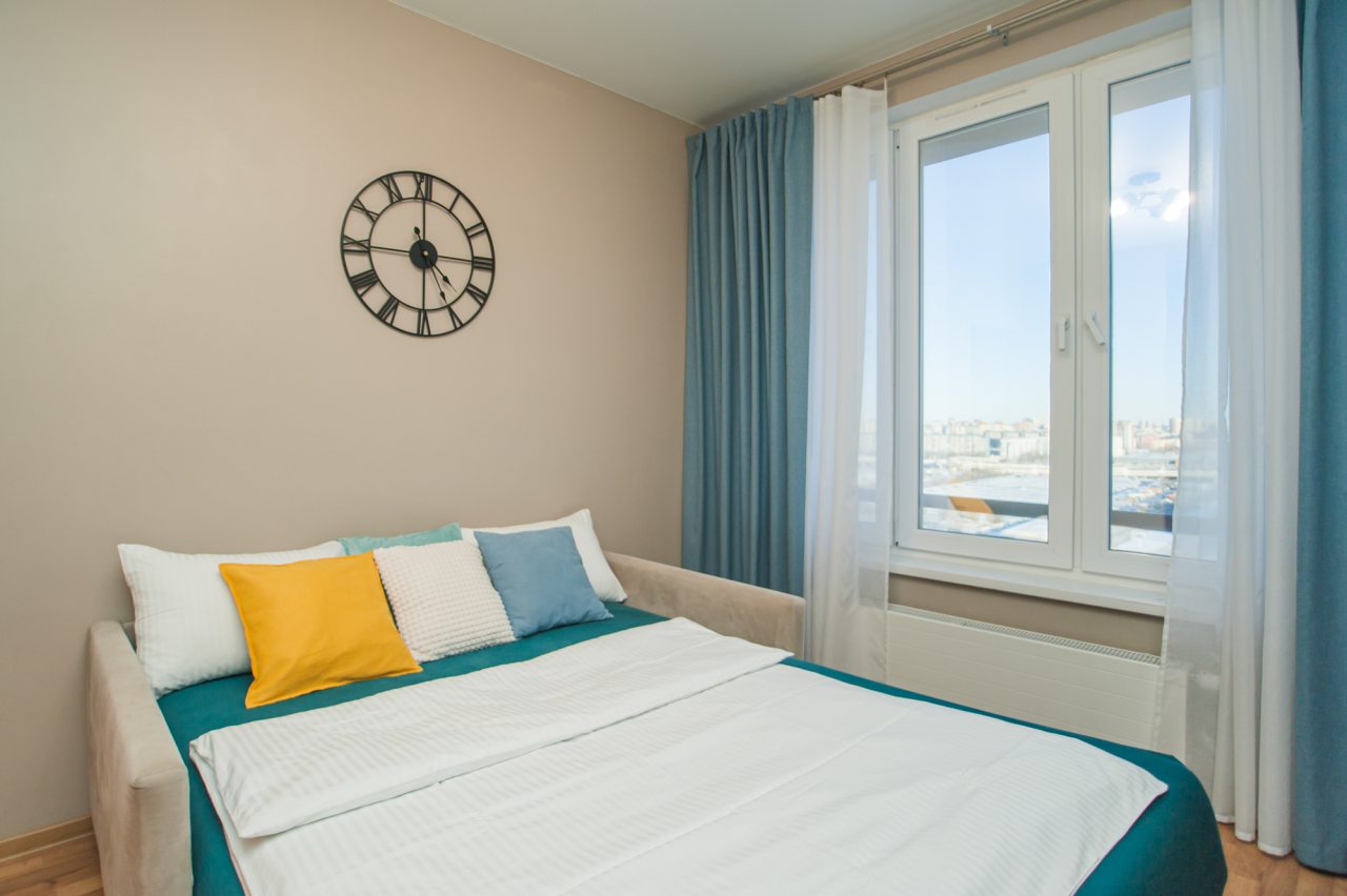 Апартаменты небольшие по своей площади, но очень уютные и обустроены для семейного проживания. Мы отдыхали с супругом и двумя нашими детьми. Нам все понравилось, считаю, что впечатления от увиденного на фото совпали на 100 с впечатлениями от реальности. Коридоры широкие, есть вместительный шкаф. В санузле присутствует ванна и можно в ней же принять душ. Диван большой, в комнате хороший телевизор. На кухне есть вся нужная посуда и бытовая техника. Ну и отдельная моя любовь - это панорамный балкон, с которого открывается потрясающий вид! До метро можно пройти пешком. Рядом расположен парк, магазины, и много интересного.