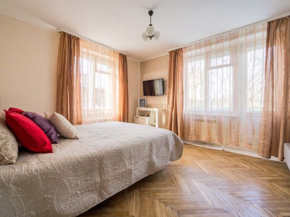 Нормальная квартира. Все необходимое есть кровати, ванная, стиральная машина, кухня. Электрический чайник и микроволновка есть. Остальное в принципе не особо волновало, т.к. приезжали в командировку и в квартире практически только ночевали. Территориально расположение хорошее - метро недалеко, магазины, аптеки.